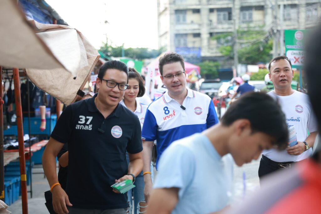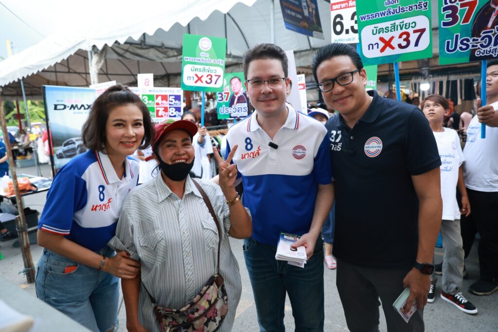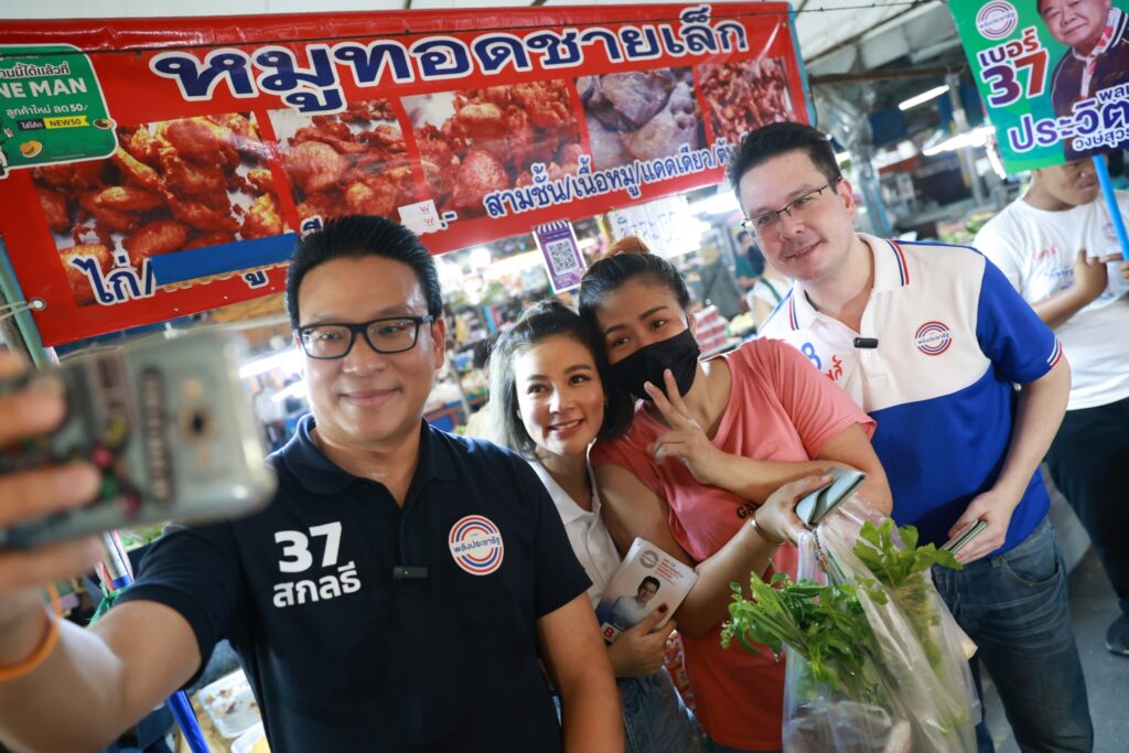 โดยเมื่อวันจันทร์ที่ 8 พฤษภาคม ที่ผ่านมา สกลธี ภัททิยกุล กรรมการบริหาร และหัวหน้าทีมผู้สมัคร ส.ส. กทม. พรรคพลังประชารัฐ พร้อมด้วยนักแสดงสาว ปู-มัณฑนา หิมะทองคำ พร้อมใจกันลงพื้นที่ในตลาดเย็น ลาดพร้าว71 ใกล้สำนักงานเขตลาดพร้าว เพื่อขอคะแนนเสียงให้กับ ผู้สมัคร ส.ส. เขต 13 ลาดพร้าว บึงกุ่ม หมายเลข 8 ดร.ภักดีหาญส์ หิมะทองคำ พรรคพลังประชารัฐ โดยย้ำถึงนโยบายเรื่อง การพัฒนาสาธารณูปโภค เน้นย้ำเข้าใจพื้นที่ รู้ปัญหา พร้อมอาสานำงบประมาณมาพัฒนาในทุกตารางนิ้ว รวมทั้งนโยบาย ลดค่าไฟบ้านเหลือหน่วยละ 2.50 บาท ลดราคาแก๊ส เหลือถังละ 250 บาท ลดราคาเบนซิล ลงลิตรละ 18 บาท ลดราคา ดีเซล ลงลิตรละ 6.30 บาท และเงินสนับสนุนสำหรับผู้สูงอายุ 60 ปีขึ้นไป 3 พันบาทต่อเดือน 70 ปีขึ้นไป 4 พันบาทต่อเดือน 80 ปีขึ้นไป 5 พันบาทต่อเดือน