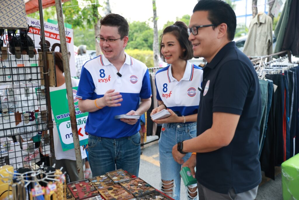 โดยสาวปู เดินถือโบรชัวร์แจกให้กับพ่อแม่พี่น้องที่มาจับจ่ายซื้อของในตลาด รวมทั้งพ่อค้าแม่ขาย พร้อมขอคะแนนสนับสนุน ดร.ภักดีหาญส์ หิมะทองคำ หมายเลข 8 โดยตลอดทางที่เดิน สาวปูก็ได้รับคำชื่นชม ทั้งสวย ทั้งตัวเล็ก น่ารักกว่าในทีวีเสียอีก ด้าน ดร.ภักดีหาญส์ นอกจากจะแนะนำตัวเอง ขอคะแนนจากทุกคนให้เลือกหมายเลข 8 แล้ว ยังแนะนำว่า “มีน้องปูมาด้วย” เป็นภาพที่น่ารักสุดๆ ไปเลย