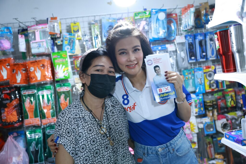 ไม่มีคำว่า “เหนื่อย” สำหรับผู้หญิงเก่งคนนี้ ปู-มัณฑนา หิมะทองคำ ดารานักแสดงมากฝีมือที่ สู้ไม่ถอย…!!! หลังจากไม่มีภารกิจถ่ายละคร สาวปูก็ลงพื้นที่ เพื่อขอคะแนนเสียงให้กับ ผู้สมัคร ส.ส. เขต 13 ลาดพร้าว บึงกุ่ม หมายเลข 8 ดร.ภักดีหาญส์ หิมะทองคำ พรรคพลังประชารัฐ สามีสุดที่รักของเธอเอง งานนี้ถึงอากาศจะร้อนอบอ้าว แต่สาวปูก็สู้ขาดใจ แถมยังยิ้มแย้มให้กับพ่อแม่พี่น้องในตลาดด้วย