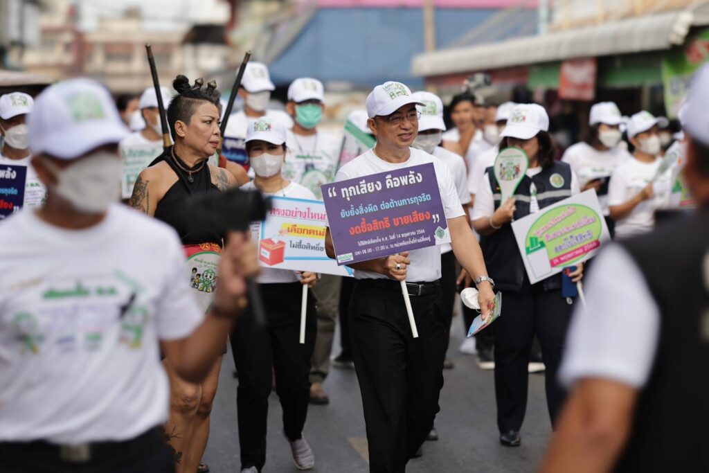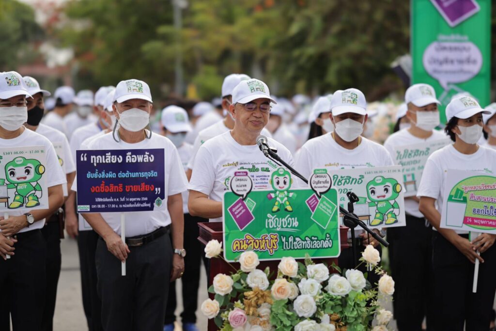 โดยจุดเริ่มต้นขบวนประชาสัมพันธ์รณรงค์ออกไปใช้สิทธิเลือกตั้งที่ศาลากลางจังหวัดสิงห์บุรี ข้ามสะพานบางระจันเข้าสู่ตัวเมืองสิงห์บุรี เลี้ยวซ้ายถนนแยกขุนสรรค์วนรอบตัวเมืองไปจอดตลาดสดสิงห์บุรี ผู้ว่าราชการจังหวัดสิงห์บุรี พร้อมชาวบ้านบางระจัน และคณะเดินรณรงค์ถือป้ายประชาสัมพันธ์พร้อมแจกแผ่นพับและพัดคลายร้อนประชาสัมพันธ์ให้ไปใช้สิทธิเลือกตั้งให้มากที่สุด มีประชาชนให้ความสนใจเป็นจำนวนมาก ขอเชิญชวนคนสิงห์บุรี ออกไปใช้สิทธิเลือกตั้งวันที่ 14 พฤษภาคม 2566 เวลา 8.00-17.00 น.นี้