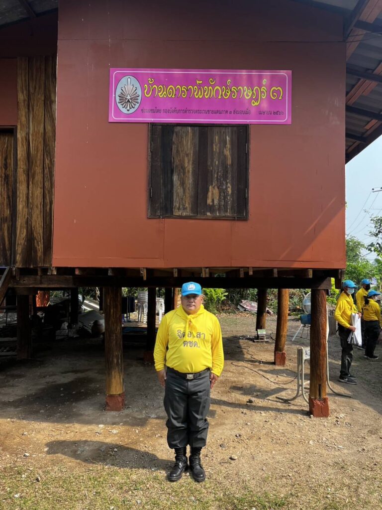 พล.ต.ต.ประกอบ พลเตชา ผบก.ตชด.ภาค 3,พ.ต.อ.สถาพร แก้วสนิท รอง ผบก.ตชด.ภาค 3,พ.ต.ท.สุทธิพร นันตา รองผกก.ฝอ.บก.ตชด.ภาค 3 พร้อม ผู้ใหญ่บ้าน และ กำลังพล จิตอาสา ได้ทำพิธีส่งมอบบ้าน “ดาราพิทักษ์ราษฏร์ 3” ให้กับ นางชุ่ม ผาดดี พร้อมมอบพระบรมฉายาลักษณ์ พระบาทสมเด็จพระเจ้าอยู่หัว และสมเด็จพระนางเจ้าพระบรมราชินี พระสาทิศลักษณ์ พระราชชายาเจ้าดารารัศมี และ สิ่งของอุปโภคบริโภค ตามสมควร