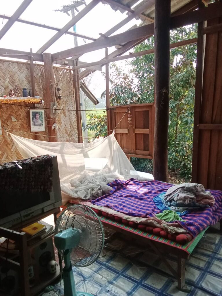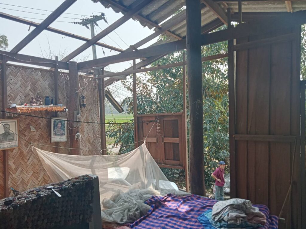 หนึ่งในบ้านที่เสียหาย เป็นบ้านของ นางชุ่ม ผาดดี อายุ 83 ปีซึ่งอยู่ลำพัง ได้รับความเสียหาย ทั้งหลังคาและผนังบ้าน