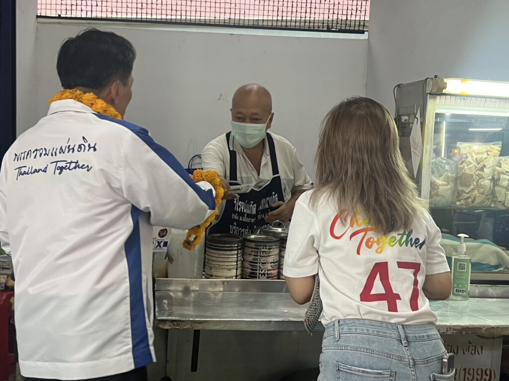 ด้านน้ากล้วย เชิญยิ้ม กล่าวว่า เราอยากขอคะแนน ขอโอกาสจากประชาชน กาให้พรรครวมแผ่นดินทั้ง 2 ใบ เราตั้งใจจริงที่จะเข้ามาร่วมแก้ปัญหาปากท้อง เศรษฐกิจ ท่านอาจเคยใช้บริการพรรคใหญ่ พรรคเก่า เขาได้ทำงานให้ถูกใจหรือไม่ ถ้าถูกใจก็เลือกเขา แต่สำหรับพรรคเรา เป็นพรรคใหม่ไฟแรง อยากเข้ามาทำงานให้ประชาชนอย่างตั้งใจ ขอโอกาสให้พรรครวมแผ่นดินเบอร์ 47 และให้นายสดใส เขต 4 ปทุมธานี เบอร์ 2 ให้โอกาสพรรคเราสักครั้ง เพื่อไปสานต่อนโยบายที่ดีๆ ในสภา