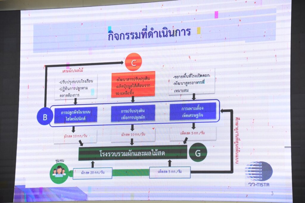 ต่อมาวันที่ 5 พฤษภาคม 2566 ณ วิทยาลัยอาชีวศึกษาภาวนาโพธิคุณ ดร.วิภารัตน์ ดีอ่อง ผู้อำนวยการสำนักงานการวิจัยแห่งชาติ (ผอ.วช.) กล่าวถึงการพัฒนาพื้นที่ต้นแบบ BCG Farming โดยมีวิทยาลัยอาชีวศึกษาภาวนาโพธิคุณ เป็นพื้นที่ต้นแบบนั้น ได้คณะนักวิจัยจาก (วว.) ดำเนินการ ซึ่งขณะนี้เข้าสู่ระยะที่ 2 โดยนักศึกษาและคณาอาจารย์ของวิทยาลัยฯ ร่วมกับชุมชนโดยรอบพื้นที่ต้นแบบ ได้ร่วมกันทำการเกษตร การแปรรูปผลิตภัณฑ์ทางการเกษตร โดยใช้หลักการสอนทั้งเชิงวิชาการและฝึกฝนทักษะวิชาชีพ โดยได้รับเทคนิควิธีอย่างดียิ่งจากคณะนักวิจัย ทำให้คณาจารย์และเยาวชนมีความรู้ ความเข้าใจและสามารถทำการเกษตรโดยใช้เทคโนโลยีสมัยใหม่ร่วมกับการให้ความรู้ การขยายผลให้กับชุมชนโดยรอบพื้นที่ศูนย์การเรียนรู้ของวิทยาลัยอาชีวศึกษาภาวนาโพธิคุณ โครงการศูนย์ BCG Farming ได้ดำเนินโครงการตลอดห่วงโซ่ ทั้งต้นน้ำ กลางน้ำ และปลายน้ำ ผ่านการขับเคลื่อนโดยชุมชนในท้องที่ สู่การสร้างความเข้มแข็งเศรษฐกิจฐานรากให้มั่นคง และยั่งยืนต่อไป