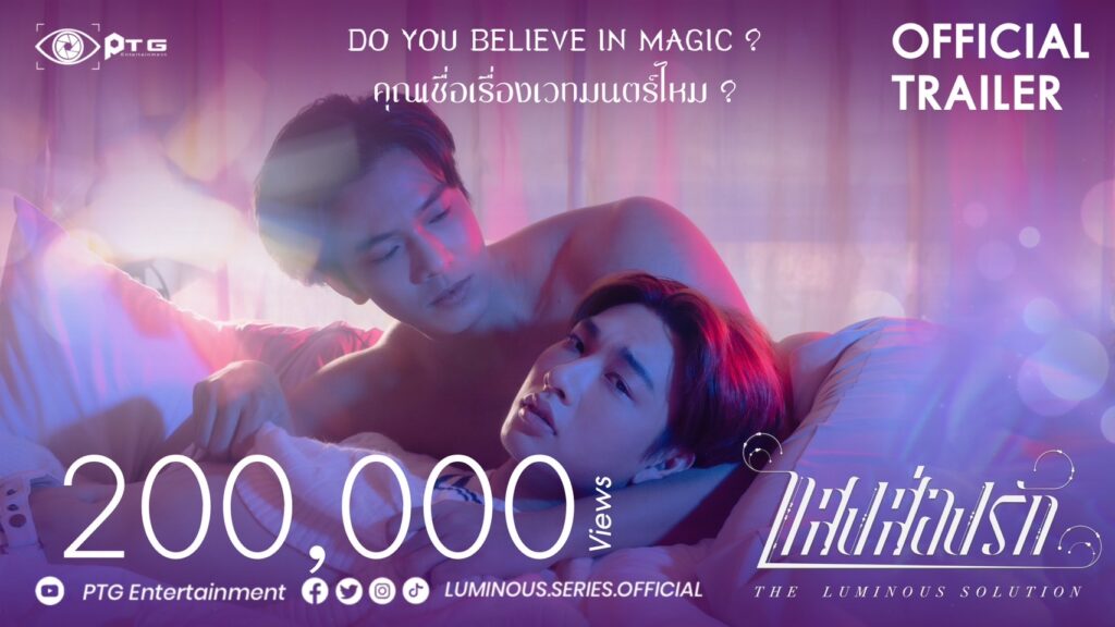 แบบนี้เค้าเรียกว่า “ว้าวมาก” “ว้าวสุดๆ ไปเลย” เมื่อ “แสงส่องรัก The Luminous Solution” ซีรีส์วาย 2023 ได้กระแสตอบรับจากเหล่าบรรดา FC แบบสุดโต่ง เพราะแค่เปิดตัว Trailer คะแนนความปังก็พุ่งสุดขีด ยอดวิวสองแสนกว่าไปแล้วจ้า ทำเอาเหล่านักแสดงและทีมงานยิ้มแก้มปริ เพราะกระแสตอบรับดีเริด…!!! ตั้งแต่ยังไม่ฉาย!!!