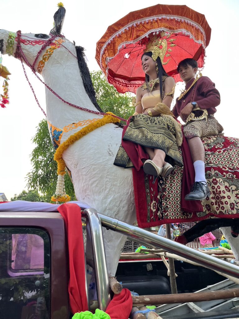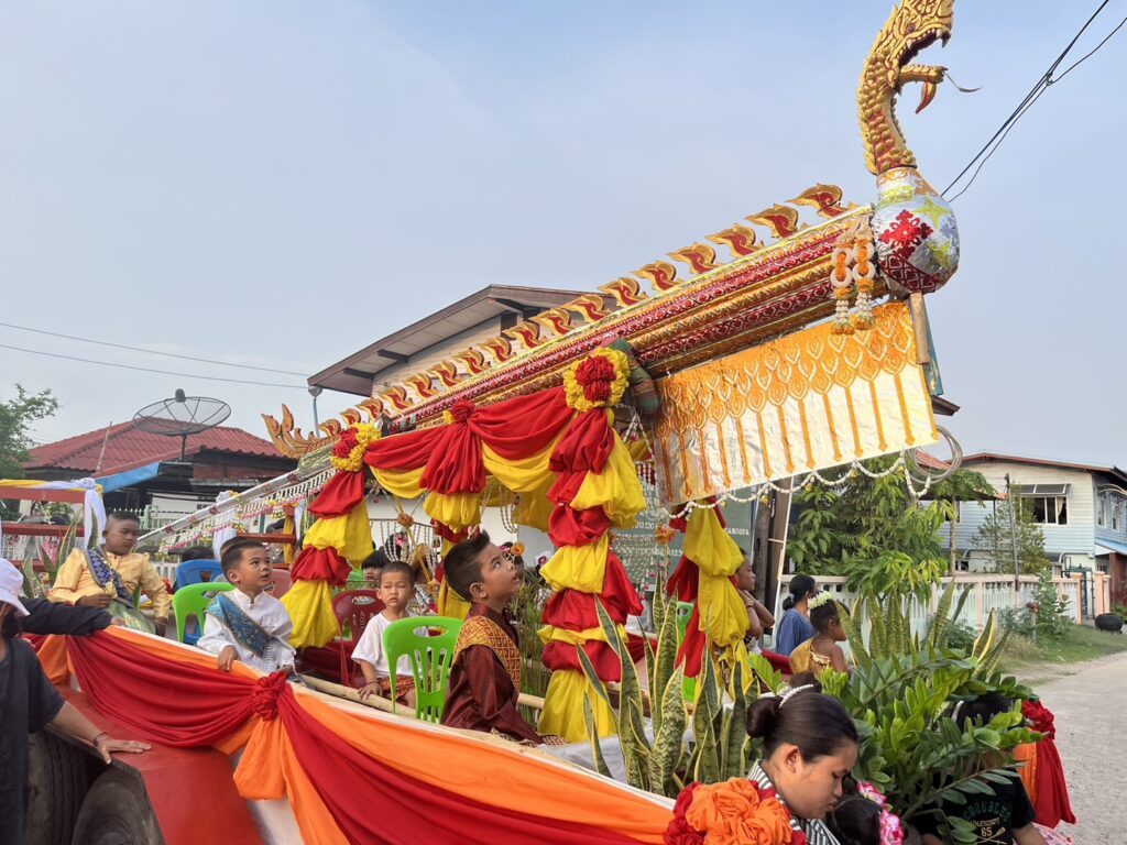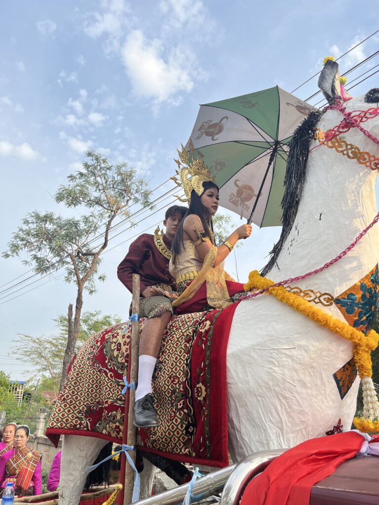 และผู้นำชุมชน ประชาชน เยาวชน นักท่องเที่ยว ร่วมงานเป็นจำนวนมาก โดยร่วมกันจัดริ้วขบวนแห่ผาแดงนางไอ่ แต่งกายด้วยชุดพื้นเมือง รำบวงสรวงพญาแถน และแห่บั้งไฟสวยงามบรรยากาศเป็นไปด้วยความสนุกสนาน