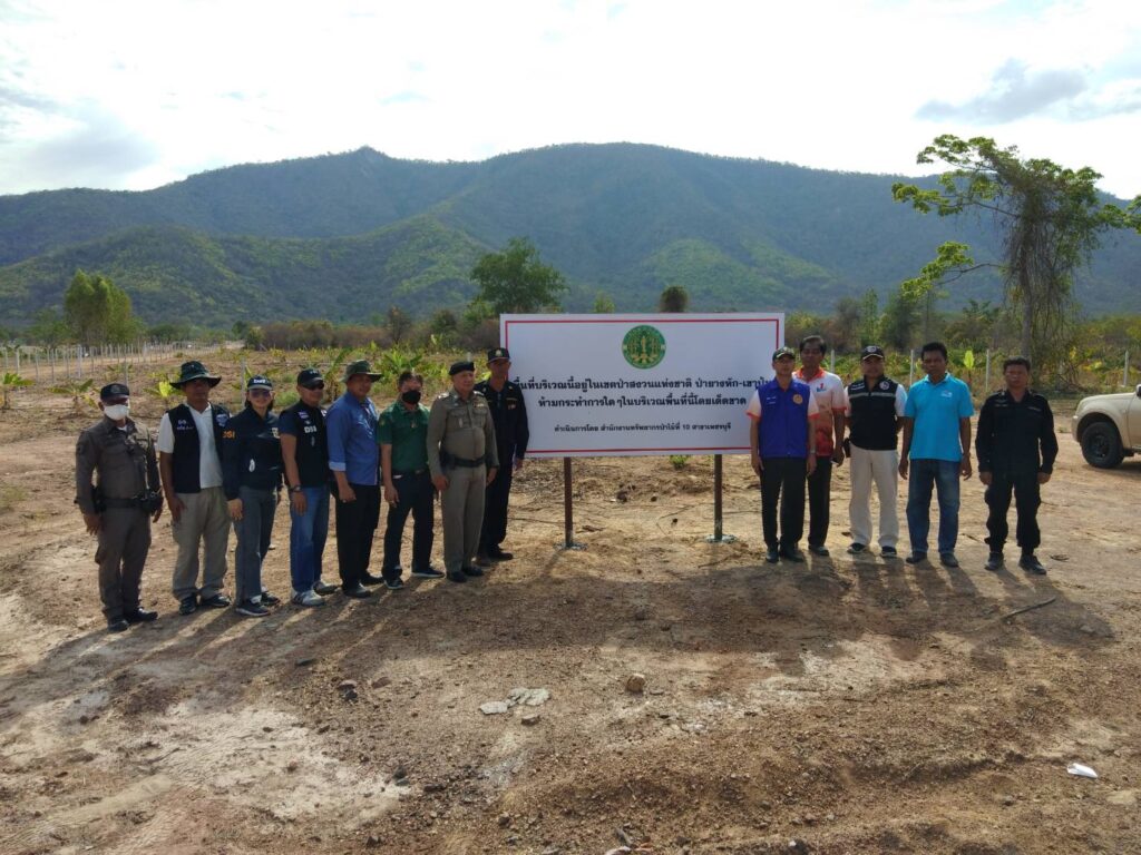 และในวันนี้ วันพุธที่ 10 พฤษภาคม 2566 เจ้าหน้าที่กรมสอบสวนคดีพิเศษ,เจ้าหน้าที่สำนักจัดการทรัพยากรป่าไม้ที่ 10 สาขาเพชรบุรี,เจ้าหน้าที่ตำรวจ สภ.ไร่สะท้อน,นายอำเภอบ้านลาด,เจ้าหน้าที่กอ.รมน. จังหวัดเพชรบุรี,นายกอบต.หนองกะปุ และผู้ใหญ่บ้าน ได้ร่วมกันปักป้ายตรวจยึดพื้นที่ตามที่เจ้าหน้าที่ป่าไม้ ได้แจ้งกล่าวโทษต่อพนักงานสอบสวน สภ.ไร่สะท้อน เป็นคดีอาญาที่ 89/2566 จำนวน 3 แปลงรวมเนื้อที่ ประมาณ 33 ไร่ และได้ปักป้ายแสดงพื้นที่เขตป่าสงวนแห่งชาติป่ายางหัก-เขาปุ้ม เพื่อเป็นการป้องปรามไม่ให้บุคคลใดแผ้วถาง ครอบครอง และทำประโยชน์ในเขตพื้นที่ป่าสงวนแห่งชาติ จำนวน 2 ป้าย