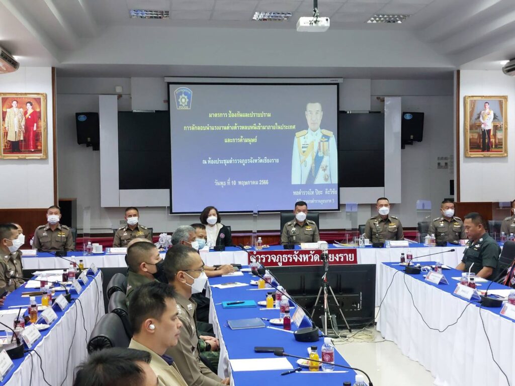 วันที่ 10 พฤษภาคม 2566 เวลา 13.00 น. พล.ต.ท.ปิยะ ต๊ะวิชัย ผบช.ภ.5 เป็นประธานการประชุม “การป้องกันและปราบปรามการลักลอบนำแรงงานต่างด้าวหลบหนีเข้ามาภายในประเทศและการค้ามนุษย์” โดยมี พล.ต.ต.วีรชน บุญทวี รอง ผบช.ภ.5 , พล.ต.ต.ดุลเดชา อาชวะสมิตระกูล ผบก.ภ.จว.เชียงราย ,น.ส.ภาณี จันทร์ตัน พมจ.เชียงราย, และหน่วยที่เกี่ยวข้อง เช่น กองกำลังผาเมือง, หน.สภ.ในสังกัด ภ.จว.เชียงราย ,ตม.เชียงราย,ตม.เชียงแสน,ตชด.32,ฝ่ายปกครองจังหวัดเชียงราย ,NGOs ด้านป้องกันการค้ามนุษย์ ร่วมประชุม ณ ห้องประชุม ภ.จว.เชียงราย