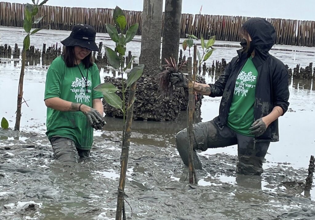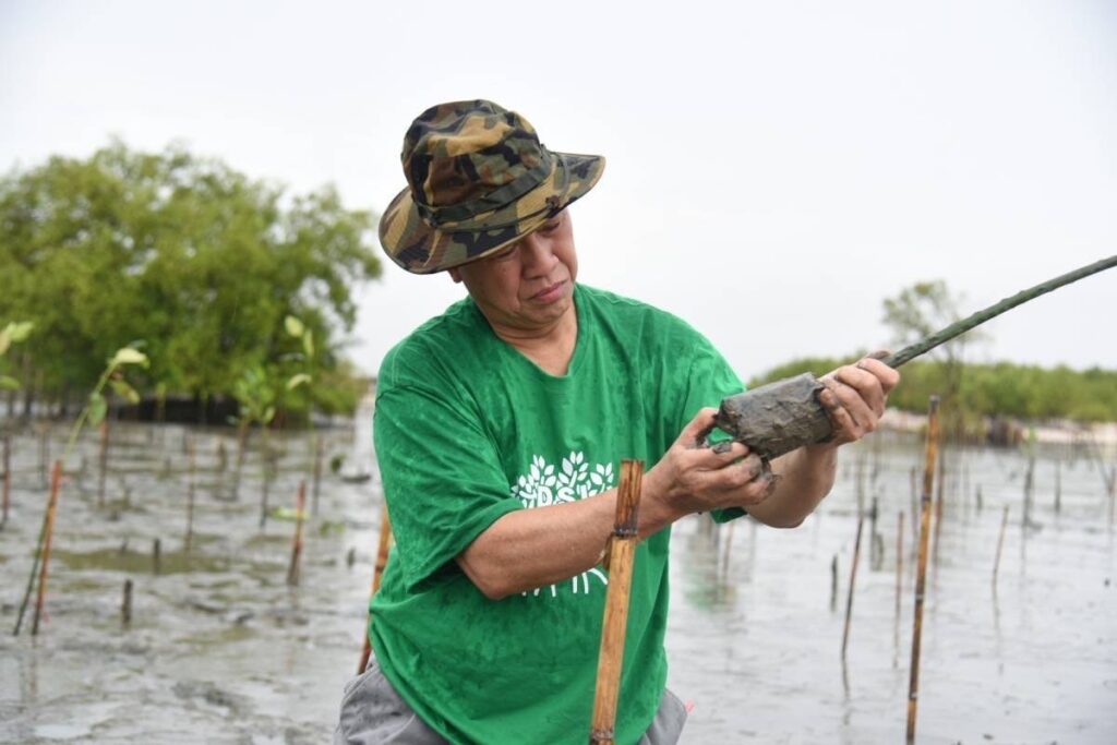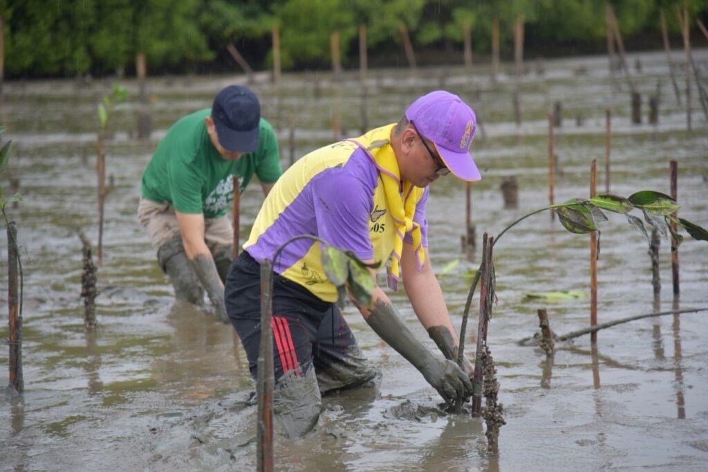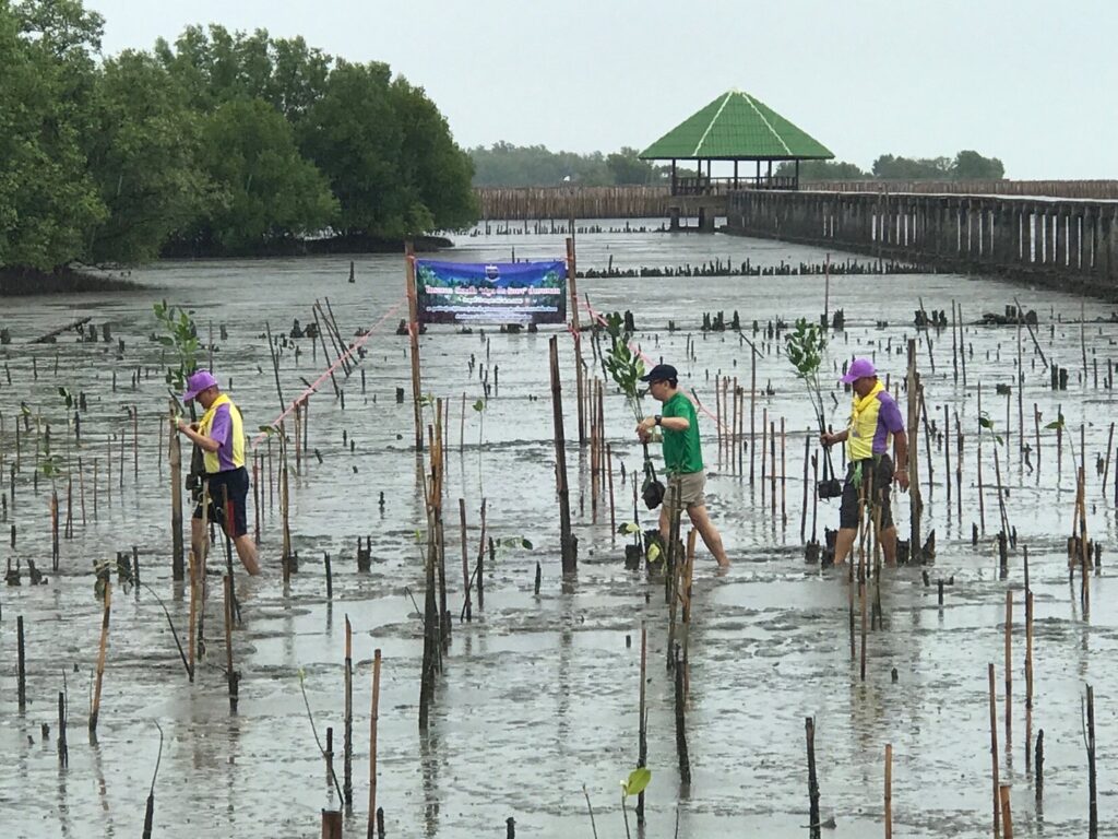 ทั้งนี้ ผู้เข้าร่วมโครงการฯ ได้รับความรู้เกี่ยวกับประโยชน์ของการปลูกป่าชายเลน จาก นายนรินทร์ บุญร่วม เจ้าหน้าที่ประจำศูนย์การเรียนรู้ฯ ที่เป็นผู้บรรยายสรุป