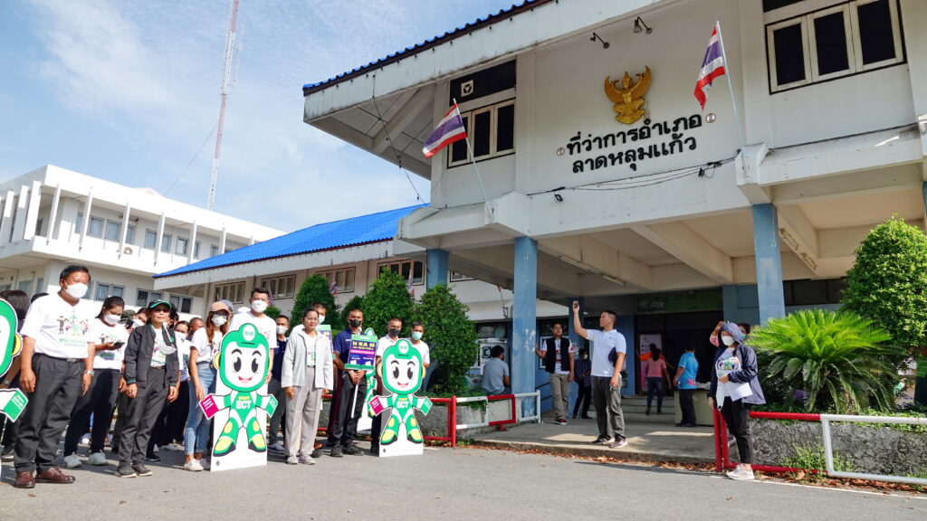 เมื่อเวลา 13.00 น. วันที่ 12 พฤษภาคม 2566 ที่บริเวณลานหน้าที่ว่าการอำเภอลาดหลุมแก้ว จังหวัดปทุมธานี ภายใต้การอำนวยการของนายณรงค์ศักดิ์ โอสถธนากร ผู้ว่าราชการจังหวัดปทุมธานี นำโดย นางรัฐยา อาจหาญ เผยพร นายอำเภอลาดหลุมแก้ว ในฐานะประธานคณะกรรมการการเลือกตั้งประจำเขตเลือกตั้งที่ 1 จังหวัดปทุมธานี เป็นประธานเปิดกิจกรรมรณรงค์เชิญชวนประชาชนออกไปใช้สิทธิเลือกตั้งสมาชิกสภาผู้แทนราษฎร (ส.ส.) ภายใต้สโลแกน “ชาวลาดหลุมแก้ว ร่วมใจกันออกไปใช้สิทธิ” ในวันอาทิตย์ที่ 14 พฤษภาคม 2566 ตั้งแต่เวลา 08.00 – 17.00 น.