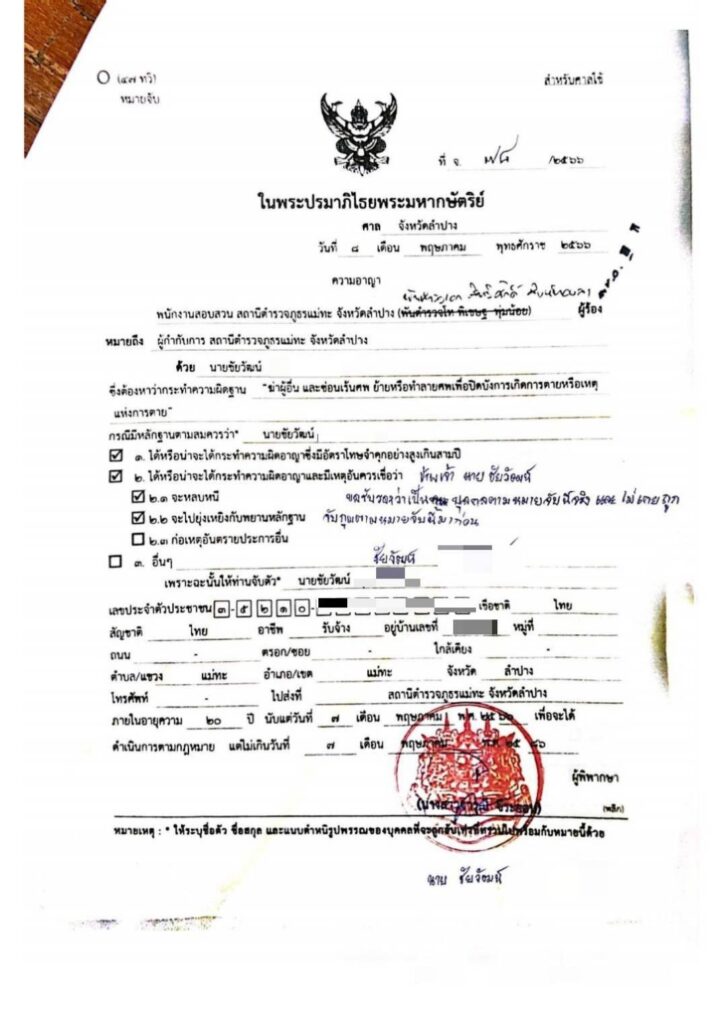 วันที่ ๑๓ พฤษภาคม ๒๕๖๖ เวลา ๑๒.๐๐ น. พล.ต.ท.ปิยะ ต๊ะวิชัย ผบช.ภ.๕ เปิดเผยว่า สืบเนื่องจากเมื่อวันที่ ๗ พ.ค.๖๖ ที่ผ่านมาได้พลเมืองดีพบศพ นายวรเมธ (สงวนนามสกุล) หนุ่มลูกครึ่งไทย-อังกฤษ อาย17 ปี ถูกฆ่าแล้วนำมาซุกซ่อนป่าละเมาะที่บริเวณดอยฮ่องทำฝ่าย ม.9 ต.สันดอนแก้ว อ.แม่ทะ จ.ลำปาง ซึ่งต่อมาวันที่ ๙ พ.ค.๖๖ เจ้าหน้าที่ตำรวจ สภ.แม่ทะ , กก.สส.ภ.จว.ลำปาง ได้ดำเนินการจับกุมนายชัยวัฒน์(สงวนนามสกุล) ตามหมายจับของศาลจังหวัดลำปาง ที่ จ.๗๘/๒๕๖๖ ในความผิดฐาน ฆ่าผู้อื่นและซ่อนเร้นศพ ย้ายหรือทำลายศพเพื่อปิดบังการเกิดการตายหรือเหตุแห่งการตาย กรณีดังกล่าวยังพบว่าน้องปิงปอง อายุ ๑๖ ปีเศษ ซึ่งได้ออกจากบ้านไปพร้อมกับนายวรเมธฯ ได้หายตัวไปพร้อมกัน