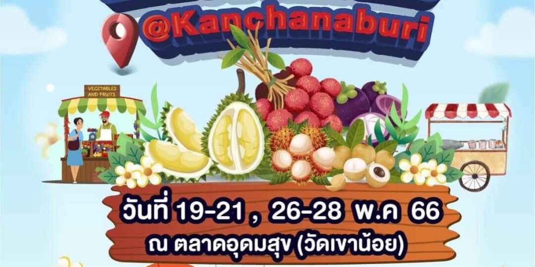 ในงาน #สุดเฟี้ยว เที่ยวงานผลไม้ กาญจนบุรี ผลไม้สดๆส่งตรงจากสวนทองผาภูมิ เจ้าของสวนมาขายเองเลยจ้า มาไว้ในเมืองกาญจน์ ณ. บริเวณ #ตลาดอุดมสุข วัดเขาน้อย แยกวังสารภี อ.เมือง กาญจนบุรี