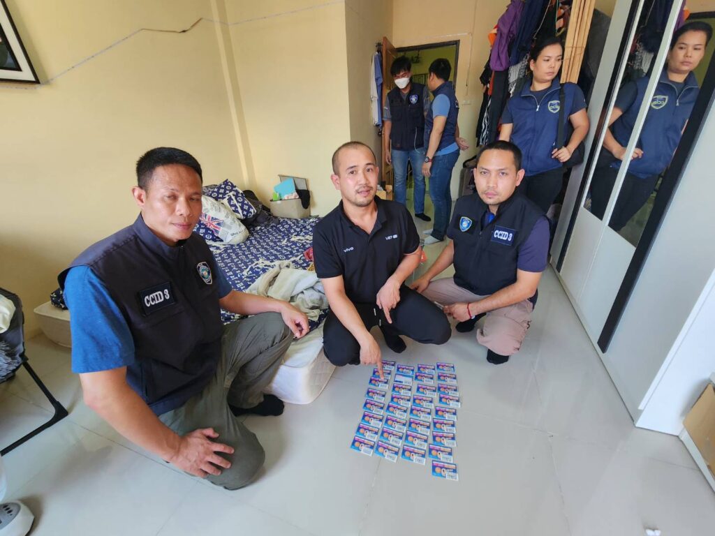 จากนั้นเจ้าหน้าที่ตำรวจจึงควบคุมตัวผู้ต้องหาไปตรวจค้นบริเวณบ้านพักในพื้นที่ หมู่ที่ 20 ต.ขามใหญ่ อ.เมือง จ.อุบลราชธานี พบซองใส่ซิมการ์ดโทรศัพท์พร้อมหมายเลขเบอร์โทรศัพท์ของเครือขายดีแทค จำนวน 33 ซอง ซึ่งผู้ต้องหารับว่าเป็นซองใส่ซิมการ์ดที่ผู้ต้องหาได้ลงทะเบียนไว้และจำหน่ายให้กับลูกค้ารายอื่นไปแล้วก่อนหน้านี้