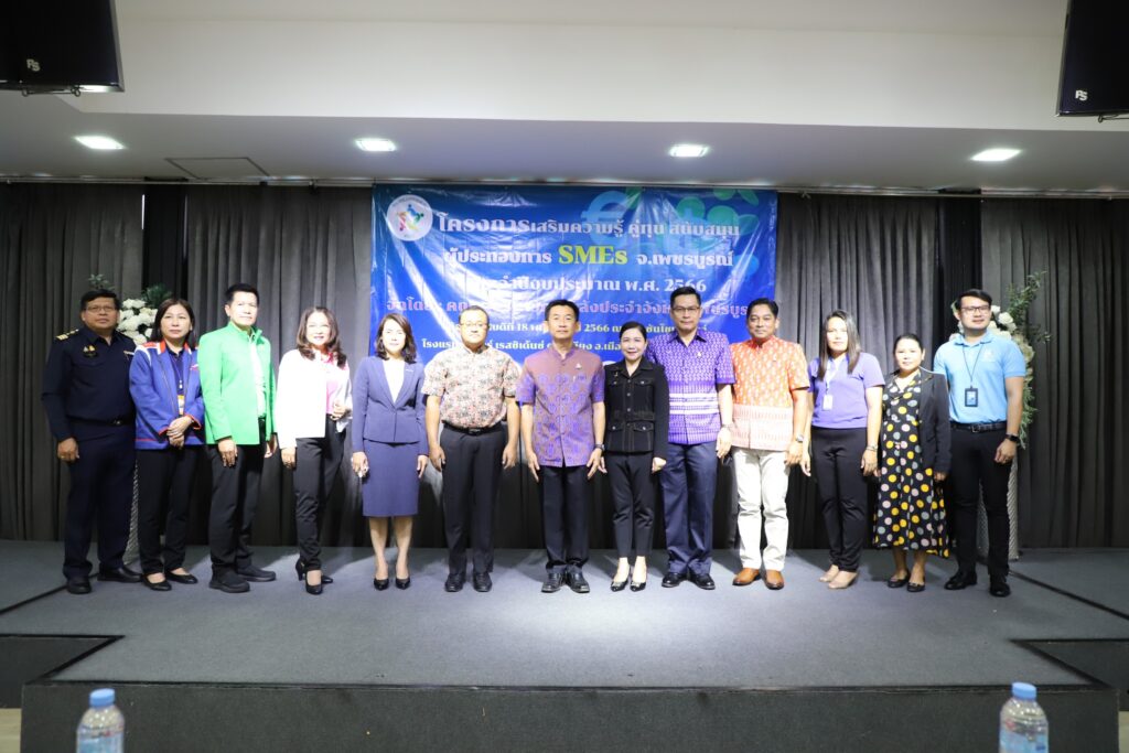 18 พฤษภาคม 2566 เวลา 09.00 น. ที่โรงแรมเอสอาร์เรสซิเดนซ์ อำเภอเมืองเพชรบูรณ์ นายสุเมธ ธีรนิติ รองผู้ว่าราชการจังหวัดเพชรบูรณ์ เป็นประธานเปิดโครงการเสริมความรู้ คู่ทุน สนับสนุนผู้ประกอบการ SMEs โดยมี นางรุ้งลาวัณย์ ชวนเกิดลาภ คลังจังหวัดเพชรบูรณ์ กล่าวรายงาน พร้อมด้วย นายชัชวาลย์ เบญจสิริวงศ์ รองผู้ว่าราชการจังหวัดเพชรบูรณ์ ผู้ประกอบการ SMEs ภาคผลิตและแปรรูปกลุ่มธุรกิจการค้าปลีกส่งและธุรกิจที่เกี่ยวข้อง บุคลากรของหน่วยงานในสังกัดคณะผู้บริหารการคลังประจำจังหวัดเพชรบูรณ์ หน่วยงานที่เกี่ยวข้อง ภาคเอกชนที่สนใจ เข้าร่วม