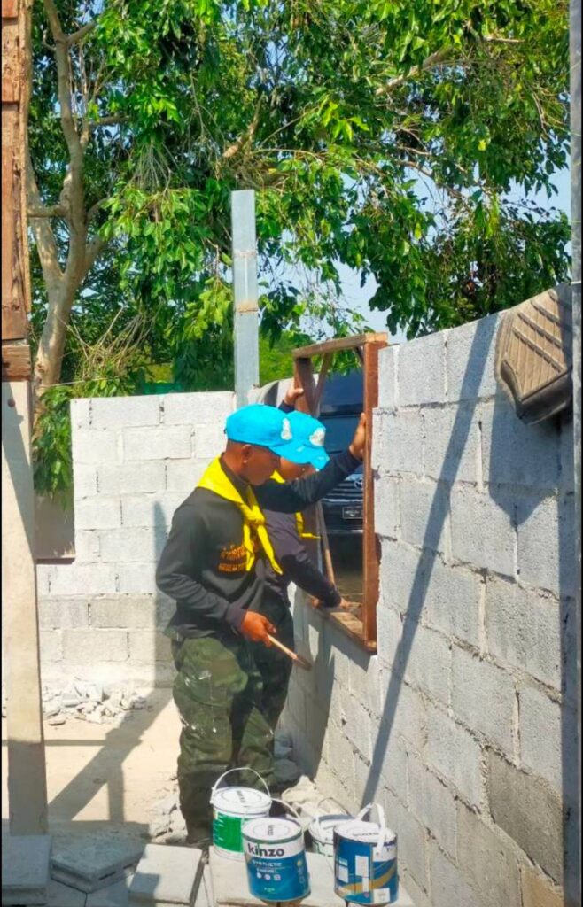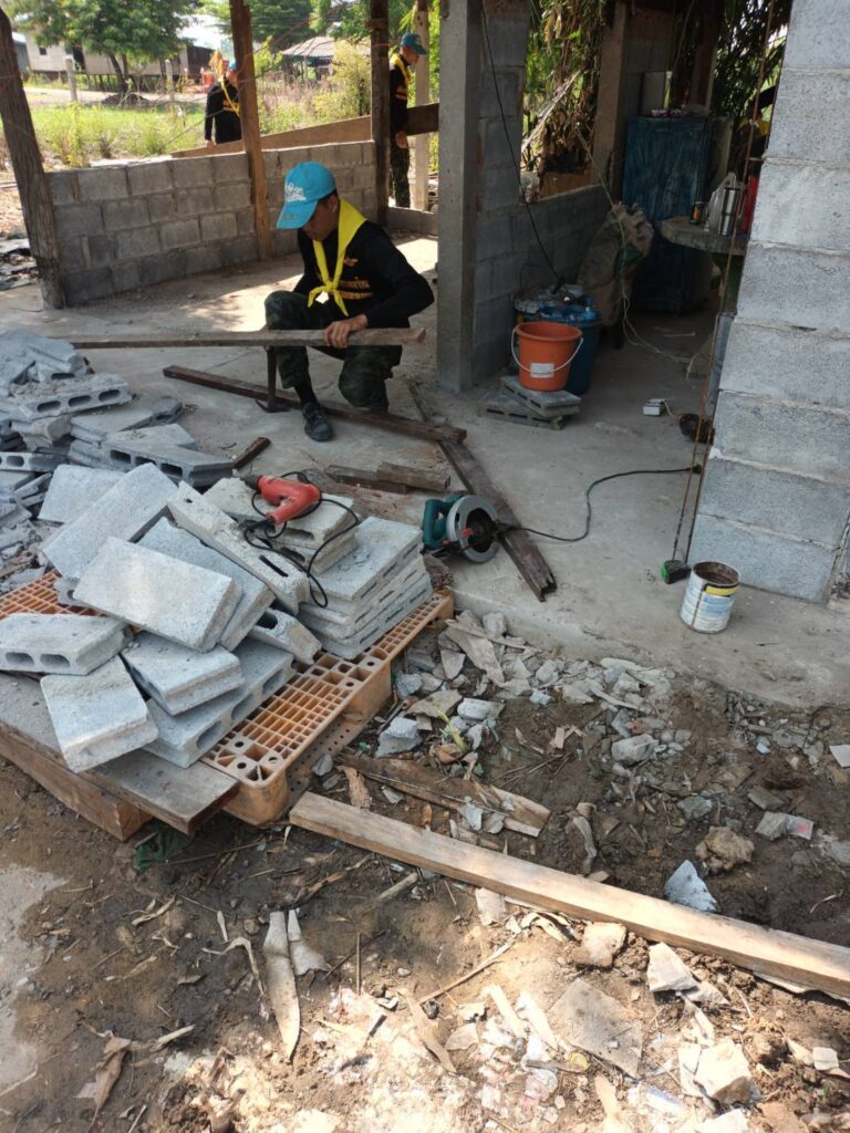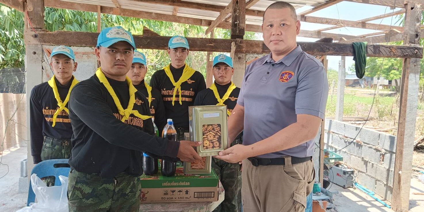 ร้อยโท ธนิสร เดชาจือเกร็ด นายทหารกิจการพลเรือน /ผู้รับผิดชอบโครงการ ลงพื้นที่มาตรวจความคืบหน้าโครงการซ่อมแซมที่อยู่อาศัย และมอบเครื่องดื่มชูกำลัง ประกอบด้วย