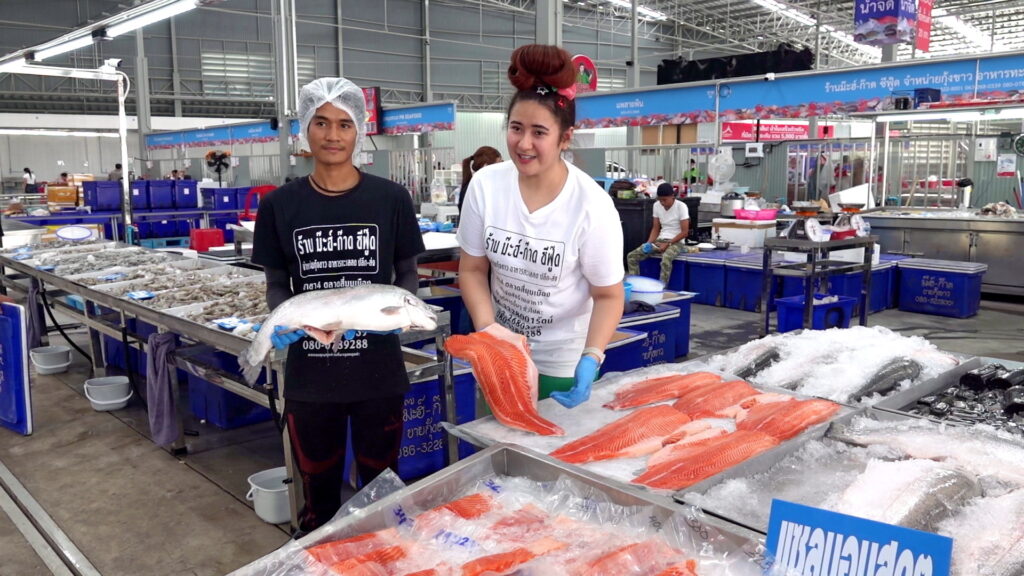 นางมะลิ จริยธรรมกุล ร้านแพเจ้มะลิ กล่าวว่า ปลาที่ร้านมาจาก จ.นครสวรรค์ที่เลี้ยงในกระชังแม่น้ำเจ้าพระยา ร้านเราขายปลาเป็น ปลามีความแข็งแรง หลายไซด์ให้ลูกค้าได้เลือก ที่ร้านมีโปรซื้อต่อเนื่อง 5 วันได้คืน 500 บาท มีสะสมแต้มให้เป็นโปรโมชั่นเฉพาะทางร้านเรา มีสินค้าไฮไลท์เป็นปลาคัง เลี้ยงกระชังแม่น้ำ ปลาคุณภาพดีแข็งแรง