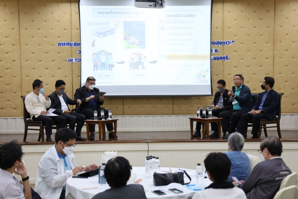 ขณะเดียวกัน ภายในการประชุมยังได้มีเวทีเสวนาเรื่อง “การมีส่วนร่วมของสังคม (Social Participation) นำสู่ สังคมแห่งการมีส่วนร่วม (Participatory Society)” โดย นพ.โกเมนทร์ ทิวทอง รองผู้อำนวยการสำนักสนับสนุนระบบสุขภาพปฐมภูมิ สธ. กล่าวว่า ในมุมของระบบบริการสุขภาพนั้น จะขาด ‘การมีส่วนร่วมของสังคม’ ไม่ได้ ซึ่งเห็นได้อย่างชัดเจนจากสถานการณ์โควิด-19 ที่ผ่านมา ถ้าหากเราไม่มี อสม. กลุ่มท้องถิ่น กำนัน ผู้ใหญ่บ้าน รวมถึงประชาชน ที่เข้ามาร่วมดำเนินมาตรการชุมชน คงเป็นการยากที่จะควบคุมโรคระบาดได้