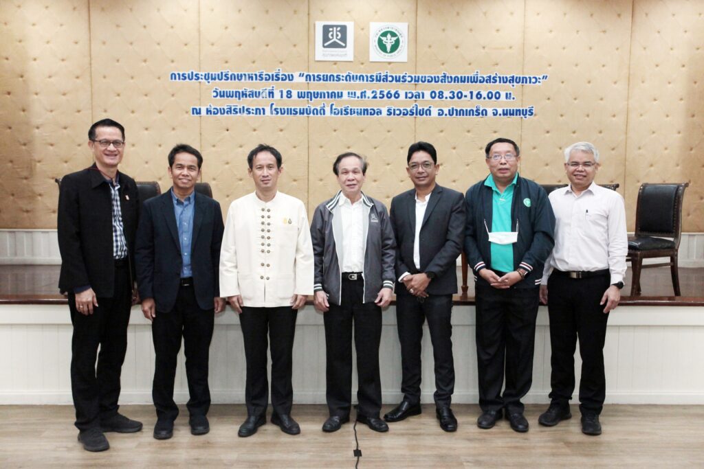 สำนักงานคณะกรรมการสุขภาพแห่งชาติ (สช.) ร่วมกับกระทรวงสาธารณสุข (สธ.) จัดการประชุมปรึกษาหารือเรื่อง “การยกระดับการมีส่วนร่วมของสังคมเพื่อสร้างสุขภาวะ” เพื่อสร้างความเข้าใจต่อ ‘การมีส่วนร่วมของสังคม (Social Participation)’ ในระดับสากล พร้อมแลกเปลี่ยนเรียนรู้สถานการณ์การมีส่วนร่วมของประเทศไทย จากตัวแทนหน่วยงานภาครัฐ ภาคประชาชน ภาควิชาการ ภาคเอกชน และเยาวชน ทั้งเป็นหน่วยงานด้านสุขภาพและด้านอื่นๆ ที่เข้าร่วมประชุมกว่า 50 คน