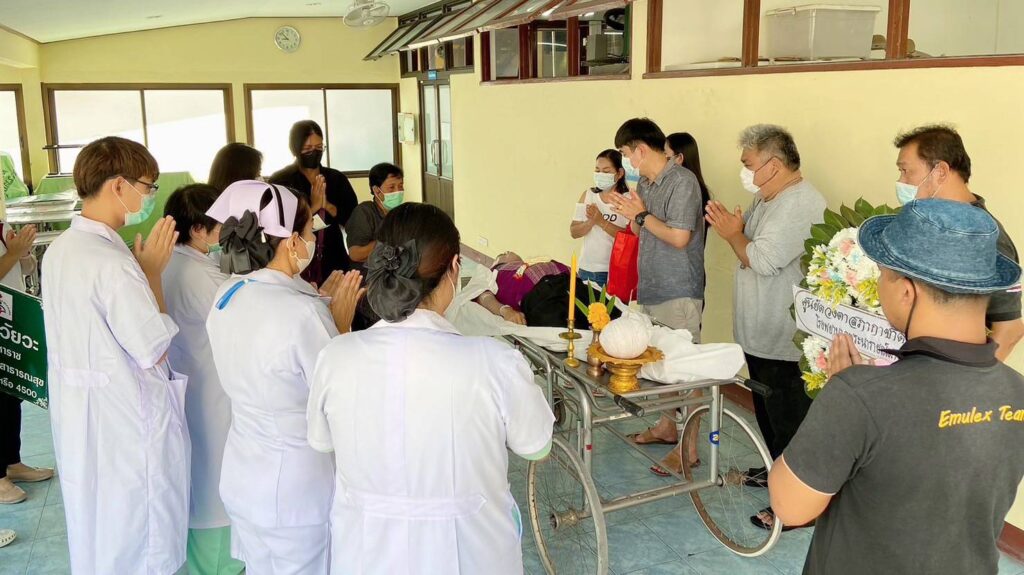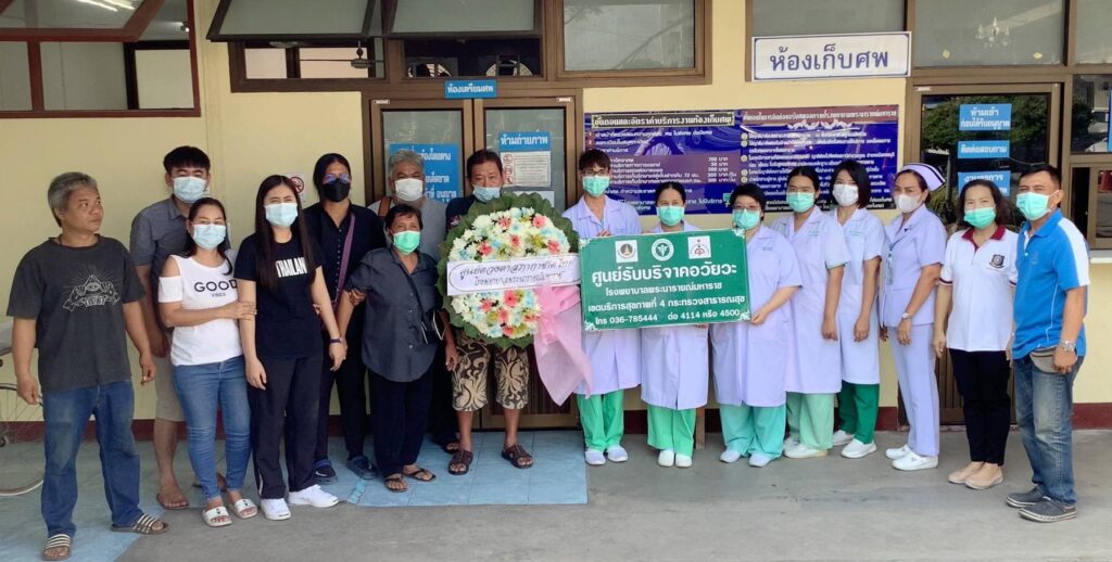 โรงพยาบาลพระนารายณ์มหาราช มอบหมายทีมบุคลากรทางการแพทย์เป็นตัวแทนมอบหรีดเพื่อเชิดชูเกียรติครอบครัวของผู้เสียชีวิต ที่ได้ทำกุศลเพื่อผู้อื่น