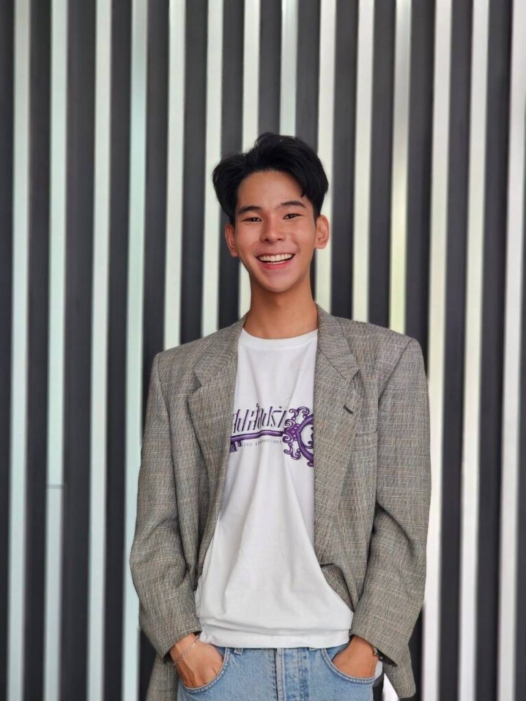 “ไม้ เป็นเด็กนักเรียนม.ปลายที่ ต้องเปลี่ยนที่เรียนอยู่บ่อยๆ ทำให้ต้องปรับตัวอยู่เสมอ เป็นวัยรุ่นคนหนึ่งที่กำลังค้นหาว่าตัวเองต้องการอะไรกันแน่ การทำการบ้าน อันดับแรกต้องทำความเข้าใจในสิ่งที่ตัวละครเป็น เมื่อเราเข้าใจแล้ว เราจะรู้จักตัวละครดี จนรู้ว่าเมื่อไม้เจอเหตุการณ์นี้ ไม้ จะมีวิธีการแสดงออกอย่างไร ส่วนไหนที่ไม่เข้าใจก็จะปรึกษาแอคติ้งโค้ชครับ ซึ่งจริงๆ แล้ว บท ไม้ ผมไม่ถือว่ามันยากหรือง่ายนะครับ เพราะตอนที่แสดงคือเราเป็นตัวละครนั้นๆ อยู่ แต่ที่แน่ๆ เราทำการบ้านกันหนักมาก มีการworkshop ลองเล่นซีนต่างๆ ก่อนที่จะมีการถ่ายทำจริงๆ กันหลายรอบ เพื่อความสมบูรณ์ของการถ่ายทำ แต่พอถ่ายทำจริงๆ มันมีองค์ประกอบหลายอย่างมาก ทำให้การเล่นแต่ละครั้งรู้สึกไม่เหมือนกันเลย ขอบคุณสำหรับโอกาสดีๆ ที่ได้มารับบทไม้นะครับ หวังว่าทุกคนจะสนุกกับการรับชมซีรีส์แสงส่องรักนะครับ”