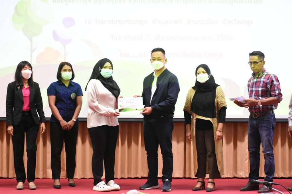 ที่ห้องประชุมวิทยาลัยชุมชนสตูล อำเภอเมือง จังหวัดสตูล นายชาตรี ณ ถลาง รองผู้ว่าราชการจังหวัดสตูล ร่วมเป็นเกียรติเปิดเวทีสรุปผลการดำเนินงาน โครงการคนสตูลสร้างสุข 2 ภายใต้แนวคิด คนสตูลสร้างสุข ปลุกวิถีชุมชน ข้ามพ้นวิกฤติโควิด ก้าวสู่เมืองแห่งความผาสุกอย่างยั่งยืนโดยมีหัวหน้าส่วนราชการ เครือข่ายสมัชชาคนสตูล เครือข่ายคนสตูลสร้างสุข หน่วยจัดการระดับจังหวัดสตูล (Node – Satun) ภายใต้การสนับสนุนของสำนักงานกองทุนสนับสนุนการสร้างเสริมสุขภาพ(สสส.) สำนัก 6 เพื่อเสวนาด้านการดำเนินโครงการให้ชุมชนได้เข้าถึงแหล่งทุนเพื่อจัดทำโครงการในประเด็นที่ร่วมสร้างเสริมสุขภาพคนสตูล โดยเปิดโอกาสให้ชุมชน หน่วยงาน องค์กร ได้เข้ามามีส่วนร่วมในการสร้างเสริมสุขภาพในประเด็นต่างๆ อาทิ การสร้างเสริมสุขภาพผู้สูงอายุ การปลูกและบริโภคผักปลอดสารพิษ การส่งเสริมการบริโภคผักและผลไม้ในโรงเรียน การจัดการขยะครัวเรือนและชุมชน การสร้างเสริมกิจกรรมทางกายด้วยศิลปวัฒนธรรมท้องถิ่น การลดจุดเสี่ยงอุบัติเหตุบนท้องถนน การลด ละ เลิกบุหรี่และเหล้า เพื่อเสริมสร้างคุณภาพชีวิตที่ดีให้แก่ประชาชนในจังหวัดสตูล โดยมีผู้เข้าร่วมกิจกรรมในครั้งนี้จำนวน 150 คน