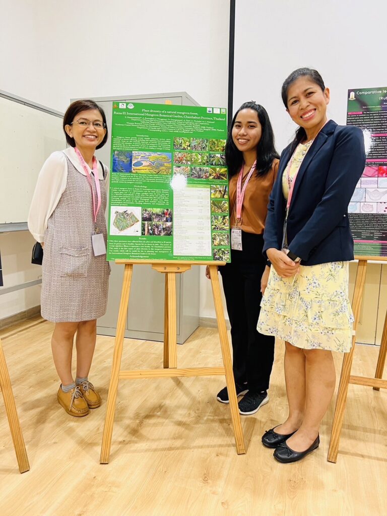 ดร.สุธิดา มณีอเนกคุณ นักวิจัยจากมหาวิทยาลัยสุโขทัยธรรมาธิราช เปิดเผยว่า โครงการวิจัยนี้เป็นความร่วมมือระหว่าง มสธ. ทช. และ มก. ภายใต้แนวคิด “ป่าชายเลน” เป็นทรัพยากรธรรมชาติ หรือขุมทรัพย์ของชายฝั่งทะเลอย่างแท้จริง ที่มีความสำคัญต่อความมั่นคงทางสังคมและเศรษฐกิจของประเทศอย่างมหาศาล สำหรับโครงการสวนพฤกษศาสตร์ป่าชายเลนนานาชาติ ร.9 ตั้งอยู่ในท้องที่บ้านเสม็ดงาม หมู่ที่ 10 ตำบลหนองบัว อำเภอเมืองจันทบุรี จังหวัดจันทบุรี มีเนื้อที่ประมาณ 518 ไร่ ซึ่งโครงการสวนพฤกษศาสตร์ป่าชายเลนฯ ดังกล่าว นอกจากสร้างขึ้นเพื่อเทิดพระเกียรติพระบาทสมเด็จพระบรมชนกาธิเบศร มหาภูมิพลอดุลยเดชมหาราชบรมนาถบพิตร และนับเป็นสวนพฤกษศาสตร์ป่าชายเลนแห่งแรกของโลก ยังมีวัตถุประสงค์เพื่อเป็นแหล่งรวบรวม จัดแสดงพรรณไม้ป่าชายเลนจากพื้นที่ส่วนต่างๆ ของโลกและเป็นพิพิธภัณฑ์ที่มีชีวิต เป็นทั้งแหล่งเรียนรู้และแหล่งศึกษาวิจัย สร้างองค์ความรู้ในทางพฤกษศาสตร์ทั้งในและต่างประเทศ เป็นสถาบันแลกเปลี่ยนความรู้ทางวิชาการด้านพฤกษศาสตร์ การใช้ประโยชน์จากพรรณไม้ป่าชายเลนที่เหมาะสมและเป็นการส่งเสริมสนับสนุนการพัฒนาที่ยั่งยืน (Sustainable Development Goals, SDGs) ของสหประชาชาติ วัตถุประสงค์ของโครงการวิจัยเพื่อศึกษาความหลากหลายทางชีวภาพและลักษณะทางนิเวศวิทยาของพื้นที่นากุ้งร้าง วิเคราะห์ความสัมพันธ์ของการเติบโตของไม้ป่าชายเลนและสภาพทางอุทกวิทยา รวมถึงปฐพีวิทยาในสวนป่าชายเลน ประเมินการกักเก็บคาร์บอนของป่าชายเลน สร้างความตระหนักเพื่อเพิ่มศักยภาพชุมชนท้องถิ่น ในการมีส่วนร่วมบริหารจัดการป่าชายเลนและทรัพยากรชายฝั่งอย่างยั่งยืน
