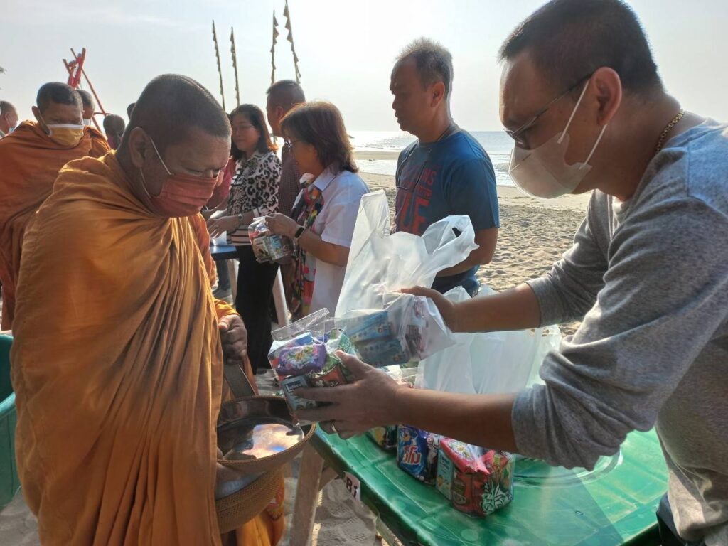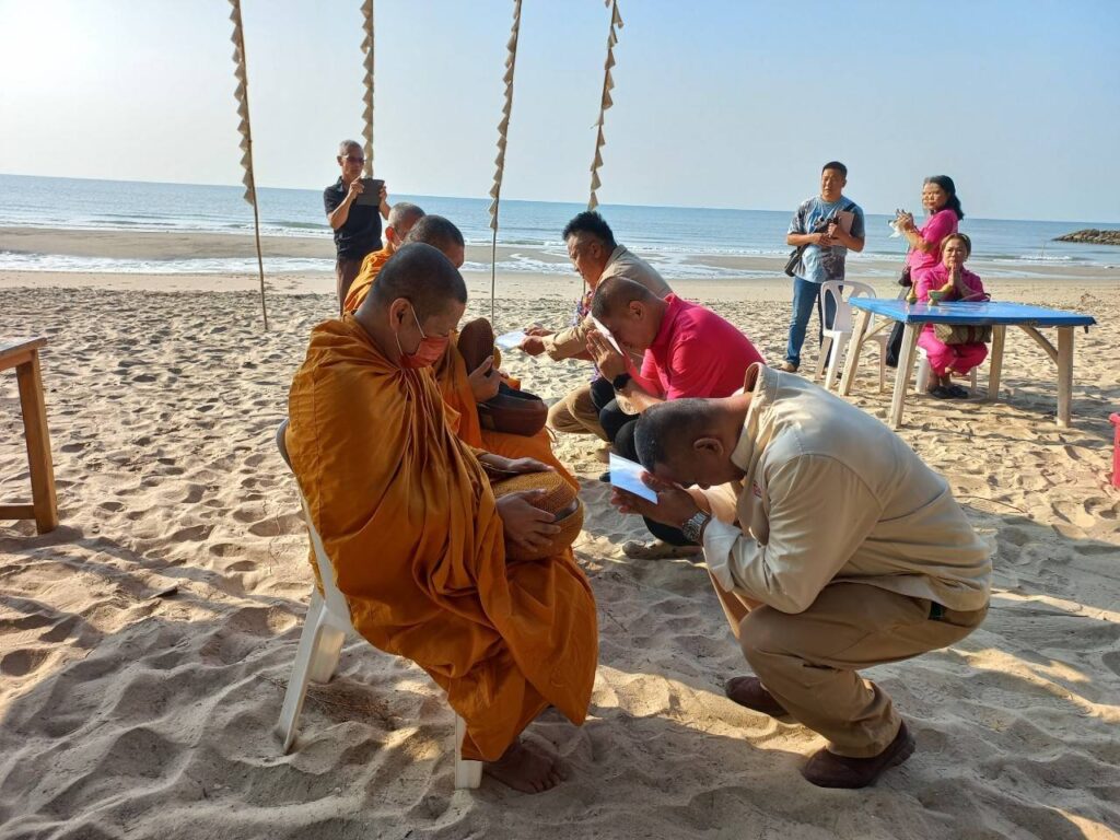 เมื่อวันอาทิตย์ที่ 21 พฤษภาคม 2566 เวลา 07.30 น. : พล.ต.เวชยันต์ แว่นไธสงค์ ผบ.มทบ.15 มอบหมายให้ พ.อ.กรกานต์ นาเวชวนิชกุล รอง ผบ.มทบ.15/รอง ผอ.รมน.จังหวัดเพชรบุรี/ผจก.พฟผ.ทบ.หาดเจ้าสำราญ ร่วมกับเจ้าหน้าที่สถานพักฟื้นและพักผ่อนกองทัพบกหาดเจ้าสำราญพร้อมด้วยประชาชนที่เข้ามาใช้บริการ ร่วมกันตักบาตรข้าวสารอาหารแห้งริมชายหาด พร้อมรับแสงแรกของวัน ณ หาดจอมพล ต.หาดเจ้าสำราญ อ.เมือง จ.เพชรบุรี
