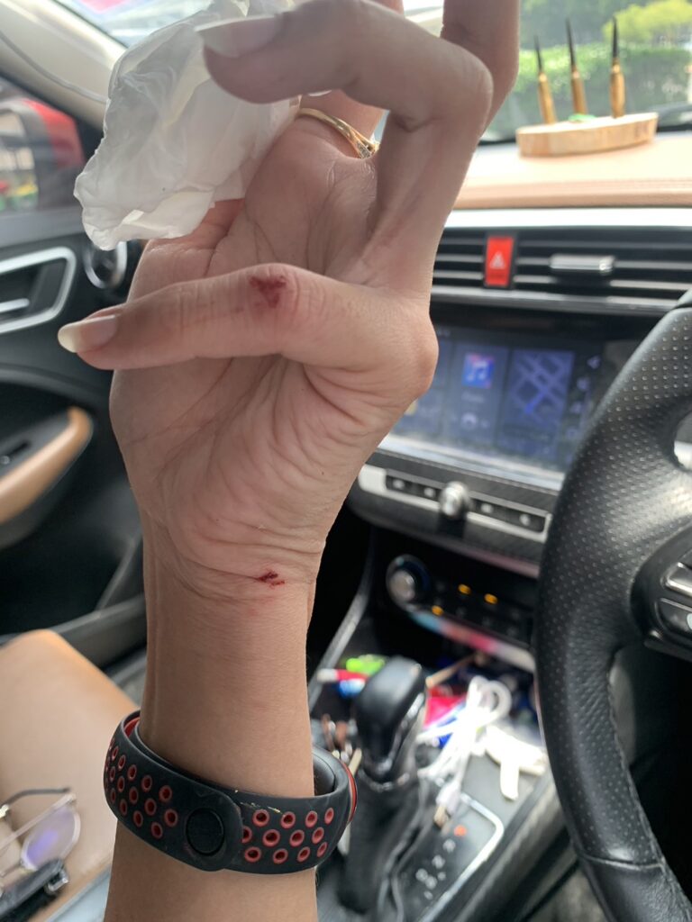 พฤติการณ์กล่าวคือ วันนี้ (22 พ.ค. 66) เวลาประมาณ 11.00 น. นางสาวเฟิร์นซึ่งรู้จักกับตนเองและเคยยืมเงิน รวมทั้งต้องจ่ายเงินค่าสินค้าคืนให้กับตนเองจำนวนเกือบ 3 หมื่นบาท ซึ่งนางสาวเฟิร์นฯ อ้างว่า ตนเองจะใช้เงินจำนวนดังกล่าวคืนให้เป็น 30,000 บาท และได้นัดหมายให้ตนเองไปรับเงินจำนวนดังกล่าวคืนที่ออฟฟิตลุงกำนัน (ตนเองทราบว่าคือออฟฟิสนาย ยุทธวัฒน์ กำนันหมู หาญเกียรติกล้า ผู้สมัครพรรคพลังประชารัฐเขต 4 ตั้งอยู่ในปั๊มน้ำมันเอสโซ่ปากซอยคุณพระ) ต.คลองหนึ่ง อ.คลองหลวง จ.ปทุมธานี เวลา 10.00 น. แต่ตนเองไปสายเล็กน้อยเมื่อไปถึง น.ส.เฟิร์นฯ ก็พาตนเองเข้าไปด้านในออฟฟิส แล้วพาไปห้องหนึ่งแล้วนั่งแกล้งปรึกษาปัญหาเรื่องการทำธุรกิจอยู่ครู่หนึ่ง แล้วก็พาตนเองไปที่อีกห้องโดยมีผู้ชายเข้ามาด้วยหนึ่งคนจากนั้นก็ผลักตนเองลงไปนอนที่พื้น แล้วเข้ามาทำร้ายร่างกายตนเองทันที รวมทั้งขว้างปาสิ่งของใส่จากนั้นได้เอากรรไกรมาแทงตนเองหลายครั้ง ตนพยายามปกป้องและเปิดประตูที่เขาล็อคเอาไว้ แต่คู่กรณีก็ตามมาใช้กรรไกรกรีดที่ใบหน้า และแทงที่ลำตัวของตนเอง ซึ่งตนเองพยายามหลบและเอามือกันไว้จนได้รับบาดเจ็บ จากนั้น น.ส.เฟิร์นฯยังได้เอาเอาน้ำมันเชื้อเพลิงไม่ทราบชนิดมาสาดใส่ตนเองพร้อมทำท่าจะจุดไฟแช็คมาโยนใส่พร้อมกับถามตนเองว่า “อยากตายไหม” โดยไม่ยอมให้ตนออกจากสำนักงาน แต่มีคนมาห้ามไว้ และคนที่เข้ามาห้ามโทรศัพท์ไปหานางสาวแอลว่า ชื่อ น.ส.แอลว่าจะให้ปล่อยตนเองได้หรือไม่ แต่แล้วก็ยังไม่ได้จะปล่อยตนเอง จนสุดท้ายตนเองหนีออกมาได้ น.ส.เฟิร์นฯพยายามตามออกมาทำร้ายตนเอง โดยการใช้กรรไกรตามมาแทงอีก แต่ตนเองก็หนีขึ้นรถมาได้และได้มีแจ้งความดังกล่าว