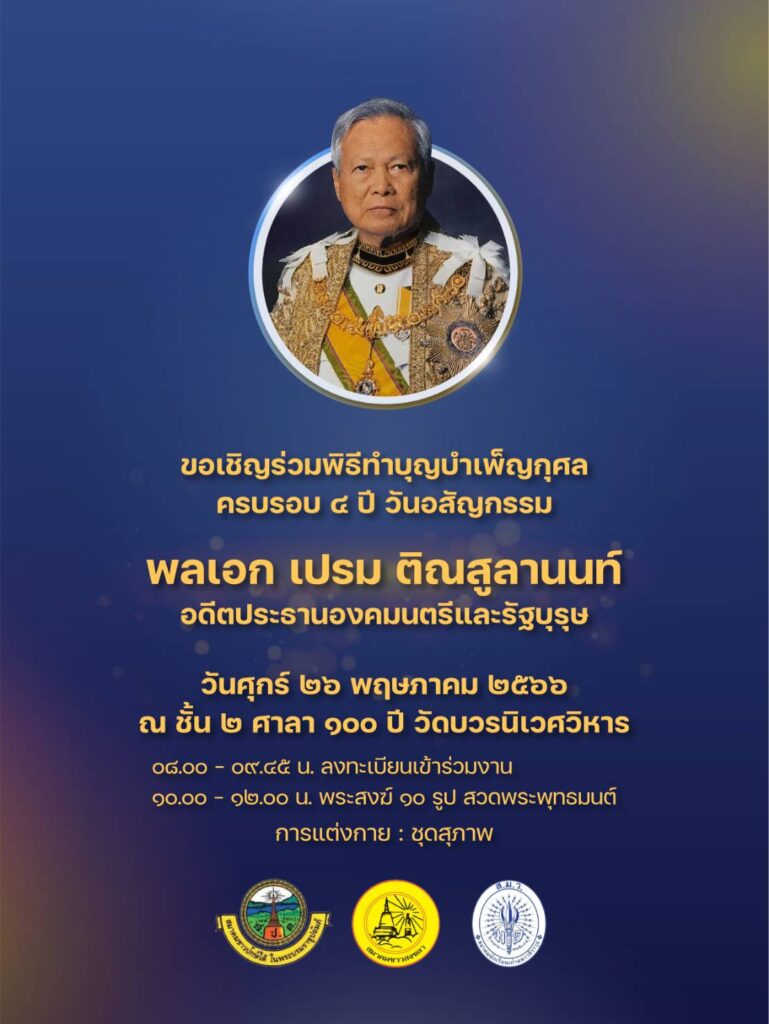 ด้วยสมาคมชาวปักษ์ใต้ ในพระบรมราชูปถัมภ์ โดย พล.ต.อ.สุรเชษฐ์ หักพาล นายกสมาคมฯ ร่วมกับ สมาคมชาวสงขลา โดย ผศ.ดร.กานต์ บุญศิริ นายกสมาคมฯ และสมาคมนักเรียนเก่ามหาวชิราวุธ โดย นายไพเจน มากสุวรรณ์ นายกสมาคมฯ พร้อมด้วยสมาคมฯและชมรมชาวใต้ทุกพื้นที่ ร่วมเป็นเจ้าภาพ จัดงานทำบุญเนื่องในโอกาสครบรอบ 4 ปี การอสัญกรรมของ พลเอก เปรม ติณสูลานนท์ อดีตประธานองคมนตรีและรัฐบุรุษ เพื่อเป็นการระลึกถึงคุณงามความดีของท่านที่มีต่อชาติบ้านเมือง