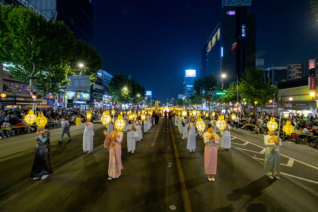 ในงานนี้ วัดภาวนาโซล ตัวแทนคณะสงฆ์ และชาวพุทธเถรวาทจากประเทศไทย คณะสงฆ์วัดพระธรรมกายจังหวัดปทุมธานี ได้ร่วมกันอัญเชิญเทวรถมีนามว่า “ทศพลญาณมงคลประพาส” ที่ประดิษฐานรูปเหมือนของพระสัมมาสัมพุทธเจ้า ปางนั่งสมาธิ พร้อมทั้งโคมวิสาขประทีป เข้าร่วมในขบวนพาเหรดบริเวณใจกลางกรุงโซล ซึ่งเป็นหนึ่งในไฮไลท์ของเทศกาลนี้ โดยขบวนเทวรถอัญเชิญพระประธาน และขบวนโคมดอกบัว ได้เดินไปสิ้นสุดที่วัดโจ เก ซา ซึ่งเป็นวัดสำคัญของพระพุทธศาสนามหายาน ประเทศเกาหลีใต้ รวมระยะทางทั้งสิ้น 4.5 กิโลเมตร ตลอดเส้นทางได้รับความสนใจจากประชาชนนับหมื่นคน