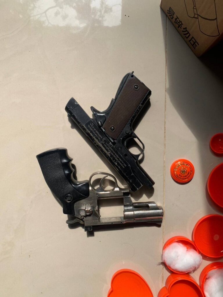 เจ้าหน้าที่ตำรวจชุดจับได้รับคำสั่งจากผู้บังคับบัญชา ให้ทำการสืบสวนผู้กระทำความผิดซึ่งเกิดขึ้นในช่องทางสื่อออนไลน์ ต่อมาชุดสืบสวนได้ตรวจพบว่าทวิตเตอร์ชื่อ “น้าจอนปืนเถื่อน” มีพฤติการณ์โพสต์ขายอาวุธปืนไม่มีทะเบียนทางออนไลน์ จึงได้ให้สายลับทำการติดต่อขอซื้อปืน ในราคา 4,700 บาท ต่อมาทางกลุ่มคนร้ายแจ้งว่าได้ทำการส่งอาวุธปืนมาให้ผู้ซื้อเรียบร้อยแล้ว และต่อมาได้มีโทรศัพท์ติดต่อกลับมาหาผู้ที่สั่งอาวุธปืนว่าเป็นการติดต่อมาจากบริษัทขนส่งเคอรี่ ตรวจพบพัสดุที่ผู้สั่งได้สั่งเป็นพัสดุผิดกฎหมาย แต่ทางเจ้าหน้าที่จะช่วยเหลือ ไม่แจ้งเจ้าหน้าที่ตำรวจ แต่ให้ทางผู้สั่งซื้อโอนเงินไปให้ทางพนักงานจำนวน 20,000 บาท เพื่อแลกกับการไม่ดำเนินคดี ซึ่งเป็นการข่มขู่หลอกลวงให้เหยื่อโอนเงินอีกรอบหนึ่งในลักษณะแก๊งค์คอลเซ็นเตอร์