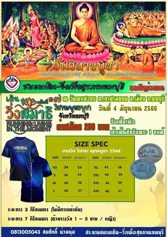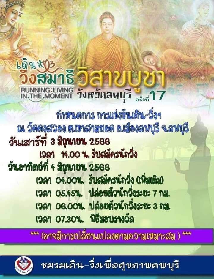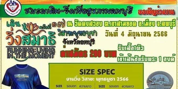 กำหนดจัดกิจกรรม “เดิน-วิ่งสมาธิวิสาขะพุทธบูชา ถือศีลห้าลดละอบายมุข” เนื่องในวันวิสาขะบูชาวันอาทิตย์ที่ 4 มิถุนายน 2566 ตั้งแต่เวลา 06.00 น.