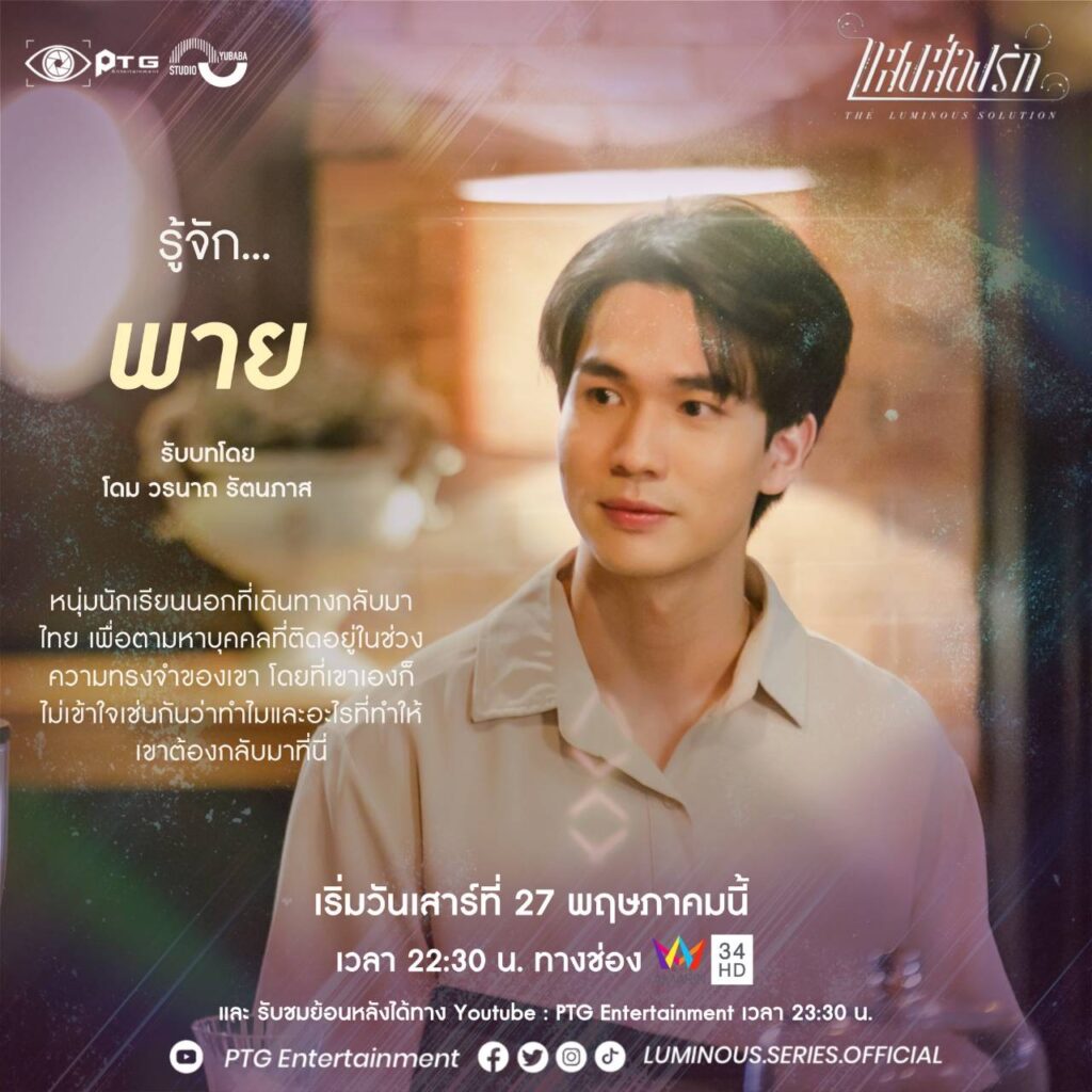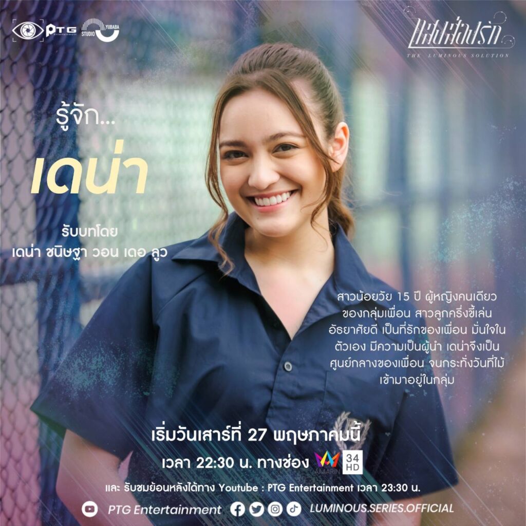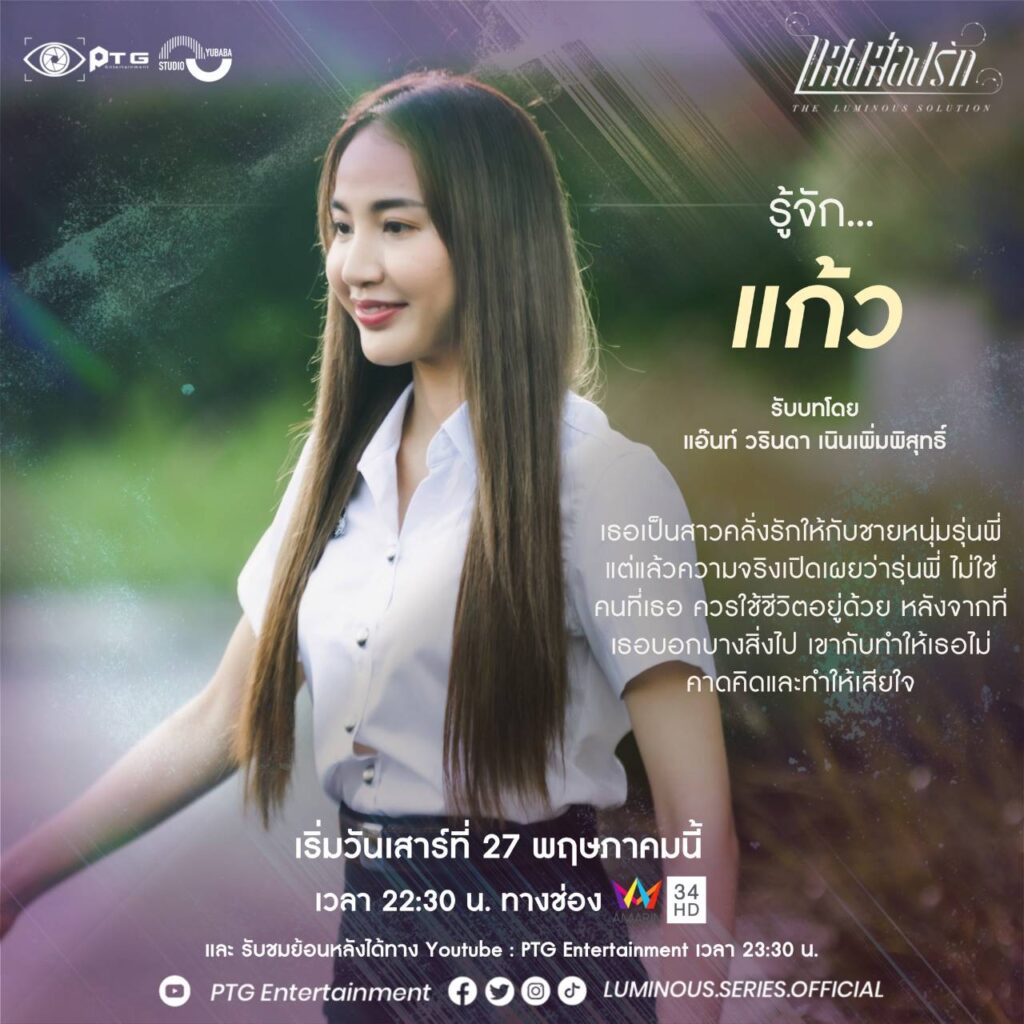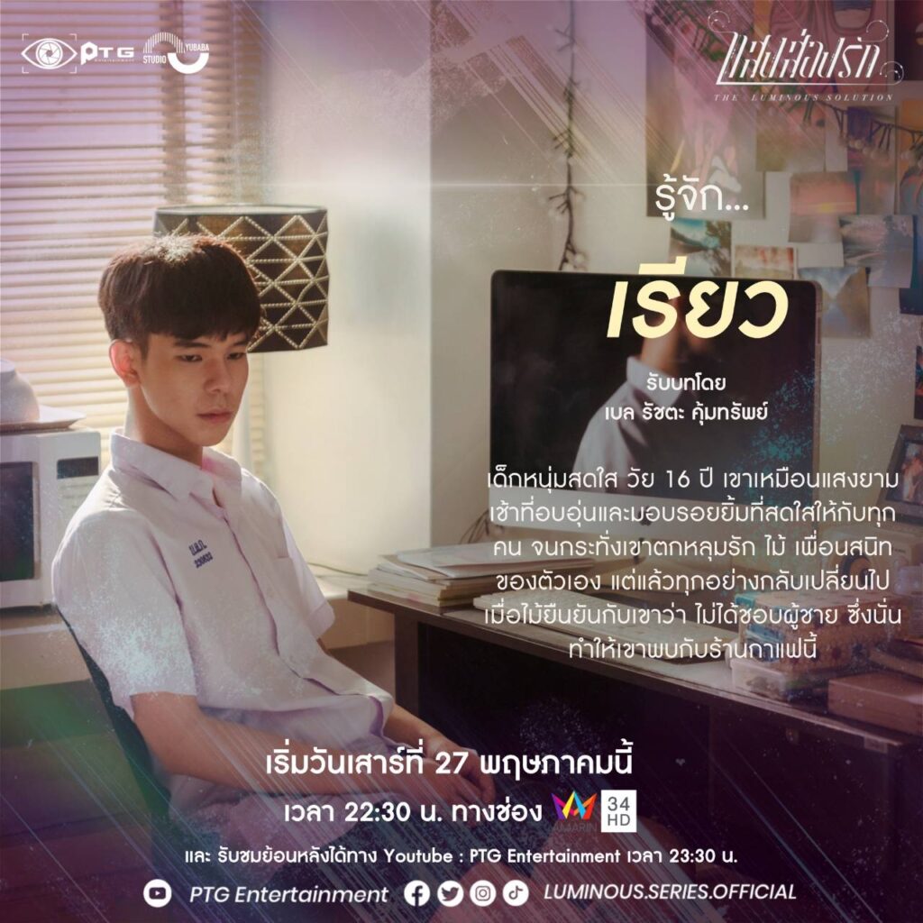 ติดตามเรื่องราวอันแสนวิเศษของพวกเขาและเธอได้ใน “แสงส่องรัก – Series the Luminous Solution” ออกอากาศทุกวันเสาร์ เวลา 22.30 น. ทางอมรินทร์ทีวี เอชดี ช่อง 34 เริ่มวันเสาร์ที่ 27 พฤษภาคม 2566 เสนอเป็นตอนแรก และอัปเดตทุกความเคลื่อนไหวและรับชมย้อนหลังได้ที่ Youtube : PTG Entertainment เวลา 23.30 น.https://youtube.com/@ptg_entertainment Facebook & Twitter & IG & Tiktok : @Luminous.series.official @ptgentertainment.th