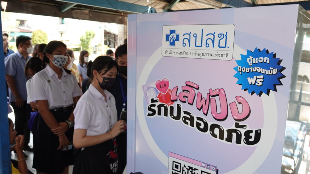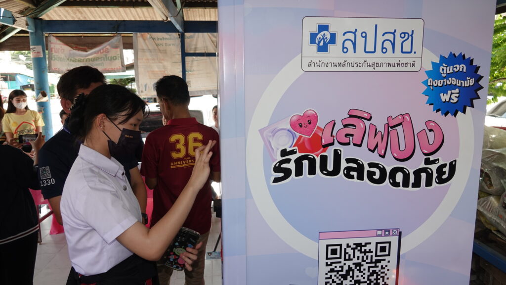 เมื่อเวลา 15.00 น. วันที่ 24 พฤษภาคม 2566 ที่ชุมชนแฟลตปลาทอง รังสิต ต.บางพูน อ.เมือง จ.ปทุมธานี สำนักงานหลักแห่งชาติ (สปสช.) เขต 4 สระบุรีร่วมกับหน่วยรับเรื่องร้องเรียนอิสระ อ.เมือง จ.ปทุมธานี ได้ติดตั้งและเปิดใช้บริการ ตู้กดถุงยางอัตโนมัติฟรี “ตู้เลิฟปิ้ง รักปลอดภัย” ภายในชุมชนแฟลตปลาทอง รังสิต จ.ปทุมธานี และ จัดกิจกรรมสื่อสารเชิงรุกสร้างความรู้การป้องกันโรคติดต่อทางเพศสัมพันธ์และสิทธิหลักประกันสุขภาพแห่งชาติ (บัตรทอง) ในกลุ่มนักศึกษาอาชีวะ 500 คนเข้าร่วมอบรม ที่วิทยาลัยอาชีวศึกษาปทุมธานี อ.เมือง จ.ปทุมธานี