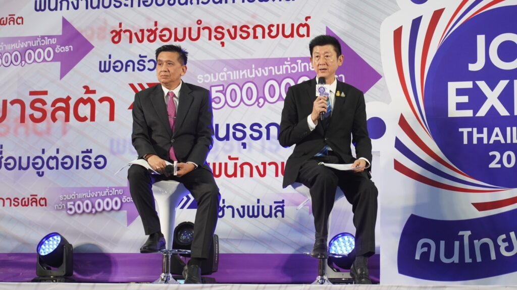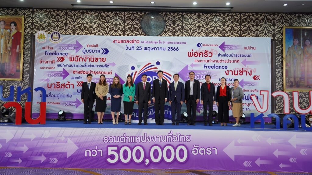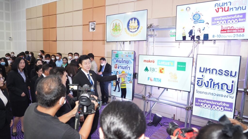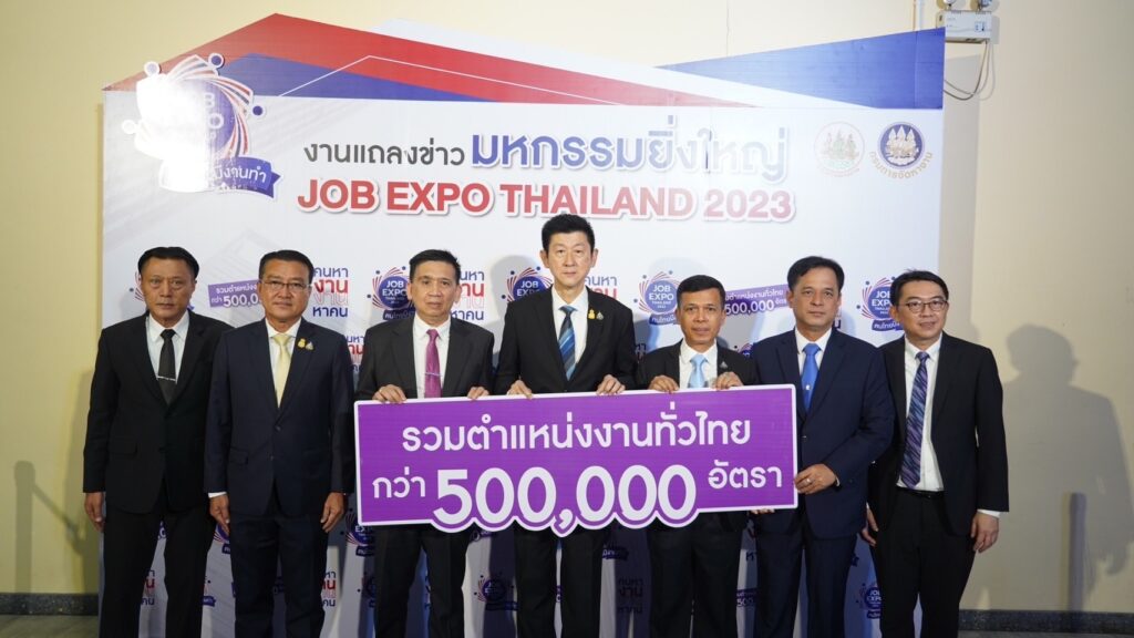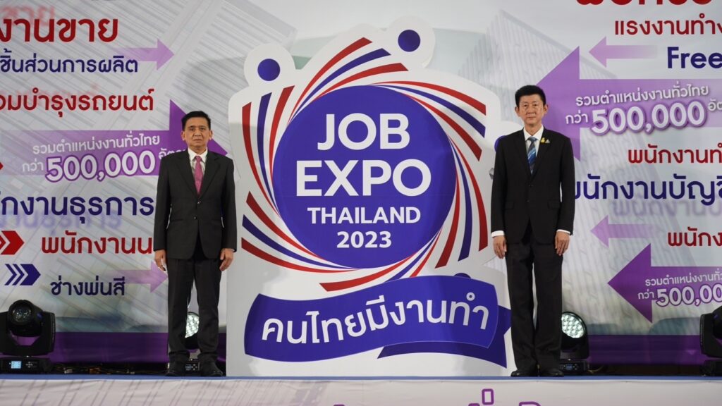 นายบุญชอบ สุทธมนัสวงษ์ ปลัดกระทรวงแรงงาน กล่าวว่า กระทรวงแรงงาน โดยกรมการจัดหางาน จัดงาน Job Expo Thailand 2023 มหกรรมการจัดหางานครั้งยิ่งใหญ่ระดับประเทศ ภายใต้งาน “คนไทยมีงานทำ คนหางาน งานหาคน” โดยมีวัตถุประสงค์เพื่อสร้างโอกาสให้ผู้สมัครงาน ไม่ว่าจะเป็นผู้ที่สำเร็จการศึกษาใหม่ ผู้ว่างงาน คนพิการ ผู้สูงอายุ หรือทุกคนที่ต้องการมีงานทำ กับนายจ้าง สถานประกอบการ ได้พบและพิจารณาคัดเลือกกันโดยตรง เพื่อประหยัดเวลา ลดค่าใช้จ่ายของทั้งสองฝ่าย รวมทั้งส่งเสริมให้คนไทยทราบความต้องการของตลาดแรงงาน ได้รับบริการแนะแนวอาชีพ คำปรึกษาด้านอาชีพที่ถูกต้อง ตลอดจนการเตรียมความพร้อมในการพัฒนาความรู้ทักษะฝีมือแรงงานให้มีศักยภาพสูงขึ้น เพื่อจะได้เตรียมตัวเข้าสู่ตลาดแรงงานได้อย่างมีประสิทธิภาพ ซึ่งจะช่วยส่งเสริมให้เกิดการจ้างงาน ลดปัญหาการว่างงานและขาดแคลนแรงงาน โดยไฮไลท์สำคัญของงานอยู่ที่ตำแหน่งงานหลากหลายทั้งในประเทศและต่างประเทศที่กรมการจัดหางานรวบรวมไว้มากกว่า 500,000 อัตรา เพื่อรองรับคนหางานทุกช่วงวัย ทุกระดับวุฒิการศึกษา และการเชิญชวนนายจ้าง สถานประกอบการชั้นนำ ร่วม 400 แห่งมารับสมัครและสัมภาษณ์ผู้สมัครงานภายในงาน ควบคู่กับการสัมภาษณ์งานออนไลน์ผ่านระบบ Zoom เพื่ออำนวยความสะดวกให้คนหางานจากทั่วประเทศ โดยตั้งเป้าว่าจะมีผู้ร่วมงานตลอด 3 วัน มากกว่า 5 หมื่นคน