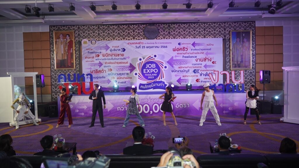 วันที่ 25 พฤษภาคม 2566 นายบุญชอบ สุทธมนัสวงษ์ ปลัดกระทรวงแรงงาน เป็นประธานแถลงข่าวการจัดงาน Job Expo Thailand 2023 ท่ามกลางสื่อมวลชนและแขกผู้มีเกียรติ ณ ห้องประชุม ชั้น 5 กระทรวงแรงงาน โดยมีนายไพโรจน์ โชติกเสถียร อธิบดีกรมการจัดหางาน นายสันติ นันตสุวรรณ นายสิบหมื่นชัย โพธิสินธุ์ รองอธิบดีกรมการจัดหางาน พร้อมด้วยผู้บริหารหน่วยงานในสังกัดกระทรวงแรงงาน และผู้แทนจากภาคบริษัท ภาคเอกชน ร่วมงาน
