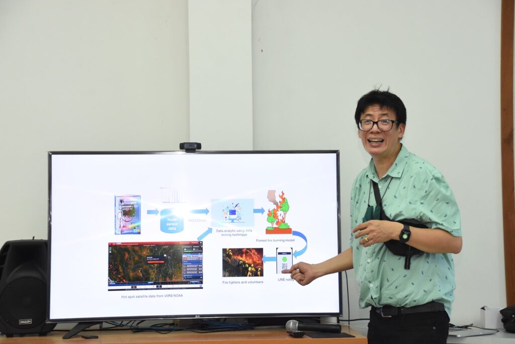 ปัจจุบันมีการติดตั้งต้นแบบระบบตรวจจับไฟป่าในระยะเริ่มต้นโดยใช้ปัญญาประดิษฐ์ โดยติดตั้งกล้องความละเอียดสูงและระบบตรวจจับไฟป่าบนเสาสัญญาณวิทยุของสถานีตำรวจภูธรก้อ อ.ลี้ จ.ลำพูน เนื่องจากเป็นพื้นที่ราบ สามารถเห็นทัศนียภาพโดยรอบของอุทยานแห่งชาติแม่ปิงได้ โดยคณะนักวิจัยใช้ภาพจากกล้องความละเอียดสูง นำมาวิเคราะห์ข้อมูลและพัฒนาแบบจำลองโดยใช้ปัญญาประดิษฐ์ในพื้นที่วิจัย ในการฝึกสอนตัวแบบได้ใช้ภาพตัวอย่างที่เป็นควันไฟจากการเผาป่าเป็นหลัก เพื่อให้ระบบปัญญาประดิษฐ์สามารถตรวจจับไฟป่าในระยะเริ่มต้นได้ เมื่อได้ตัวแบบที่เหมาะสมแล้วจึงได้พัฒนาแอปพลิเคชันตรวจจับไฟป่าขึ้น โดยแบ่งการทำงานเป็น 2 ส่วน ได้แก่ ส่วนที่ 1 การบริหารจัดการระบบ ผู้ดูแลระบบสามารถเพิ่มเติม แก้ไขข้อมูลอุปกรณ์ตรวจจับ และผู้ใช้งานระบบสามารถเข้ามาดูภาพเหตุการณ์ต่างๆ ย้อนหลังได้ ส่วนที่ 2 เป็นการแจ้งเตือนโดยผ่านแอปพลิเคชันไลน์แก่เจ้าหน้าที่ควบคุมไฟป่า เมื่อระบบตรวจพบความผิดปกติจะแจ้งเตือนไปยังเจ้าหน้าที่โดยระบุทิศทางและภาพสันนิษฐานว่าจะเป็นควันไฟป่า นอกจากนี้ เจ้าหน้าที่ยังสามารถเข้าดูภาพเหตุการณ์ย้อนหลังได้ ทั้งนี้ คณะนักวิจัยยังได้ประสานความร่วมมือกับหน่วยงานในพื้นที่เพื่อให้บริการข้อมูลที่ได้จากการวิจัย อาทิ เทศบาลตำบลก้อ องค์การบริหารส่วนตำบลแม่ลาน อ.ลี้ จ.ลำพูน และสถานีควบคุมไฟป่าแม่ปิง อุทยานแห่งชาติแม่ปิง และยังได้ร่วมมือกับโครงการก้อแซนด์บ๊อกซ์ โดยชมรมผู้รับพระราชทานทุนมูลนิธิอานันทมหิดล เพื่อขยายผลในการสร้างความร่วมมือกับชุมชนในการเฝ้าระวังการเกิดไฟป่าในระยะยาวต่อไป