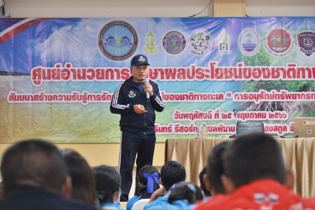 น.อ.แสนย์ไท บัวเนียม รอง ผอ.ศรชล.จว.สตูล/ผบ.นก.พตต.ศรชล.ภาค 3 กล่าวว่า การสร้างความรับรู้ในบทบาทหน้าที่ในการรักษาผลประโยชน์ของชาติทางทะเล รองผอ.ศรชล.จว.สตูล และการช่วยเหลือผู้ประสบภัยทางทะเล วิทยากรจากหน่วยรักษาความปลอดภัยทางทะเล กองทัพเรือ เกาะหลีเป๊ะ , วิทยากรจากศูนย์อนุรักษ์ทรัพยากรป่าชายเลนที่ 25 และศูนย์อนุรักษ์ทรัพยากรทางทะเลจังหวัดสตูลเพื่อสร้างความเข้าใจเกี่ยวกับความสำคัญของผลประโยชน์ของชาติทางทะเลการอนุรักษ์และการใช้ประโยชน์ทรัพยากรทางทะเลและชายฝั่ง