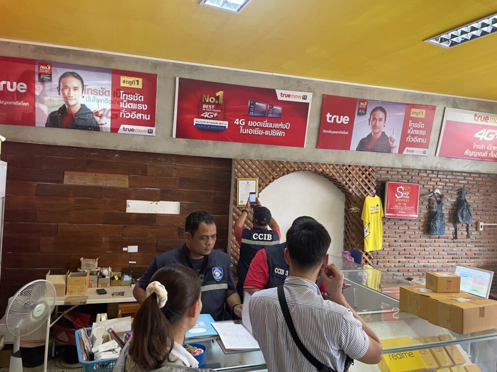 ต่อมาวันที่ 25 พ.ค.66 พ.ต.อ.นิคม ชัยเจริญ ผกก.3 บก.สอท.3 จึงได้สั่งการให้เจ้าหน้าที่ตำรวจ กก.3 บก.สอท.3 นำโดย พ.ต.ต.ศิรสิทธิ์ ทันศรี สว.กก.3 บก.สอท.3 นำกำลังเข้าตรวจค้น ศูนย์บริการทรูเอเจนท์พลัส เลขที่ 767/1 ม.11 ต.ในเมือง อ.เมือง จ.หนองคาย พบนายกิติพัฒน์ จิรสิทธิ์การุญ อายุ 56 ปี แสดงตัวเป็นเจ้าของร้าน จากการสอบถาม นายกิติพัฒน์ฯ ให้การรับว่าซิมการ์ดโทรศัพท์ที่ตรวจพบในกล่องพัสดุเป็นซิมการ์ดที่ลงทะเบียนในนามของบุคคลอื่นและตนเองมีหน้าที่แพ็คซิมการ์ดใส่กล่องเพื่อส่งให้กับผู้ที่สั่งซื้อจริง จึงได้จับกุม นายกิติพัฒน์ จิรสิทธิ์การุญ อายุ 56 ปี เจ้าของร้านฯ ในความผิดฐาน “เป็นธุระจัดหา โฆษณา หรือไขข่าวโดยประการใดๆ เพื่อให้มีการซื้อหรือขายเลขหมายโทรศัพท์สำหรับบริการโทรศัพท์เคลื่อนที่ ซึ่งลงทะเบียนผู้ใช้บริการในนามของบุคคลหนึ่งบุคคลใดแล้ว แต่ไม่สามารถระบุตัวใช้บริการได้”และตรวจยึดซิมโทรศัพท์เครือข่ายทรูและดีแทคที่ลงเบียนแล้ว จำนวน 180 ซิม ที่บรรจุจ่าหน้าซองเตรียมส่งให้ลูกค้า และซิมโทรศัพท์ เครือข่ายทรู อีกจำนวน 496 ซิม นำส่งพนักงานสอบสวนดำเนินคดีตามกฎหมายต่อไป