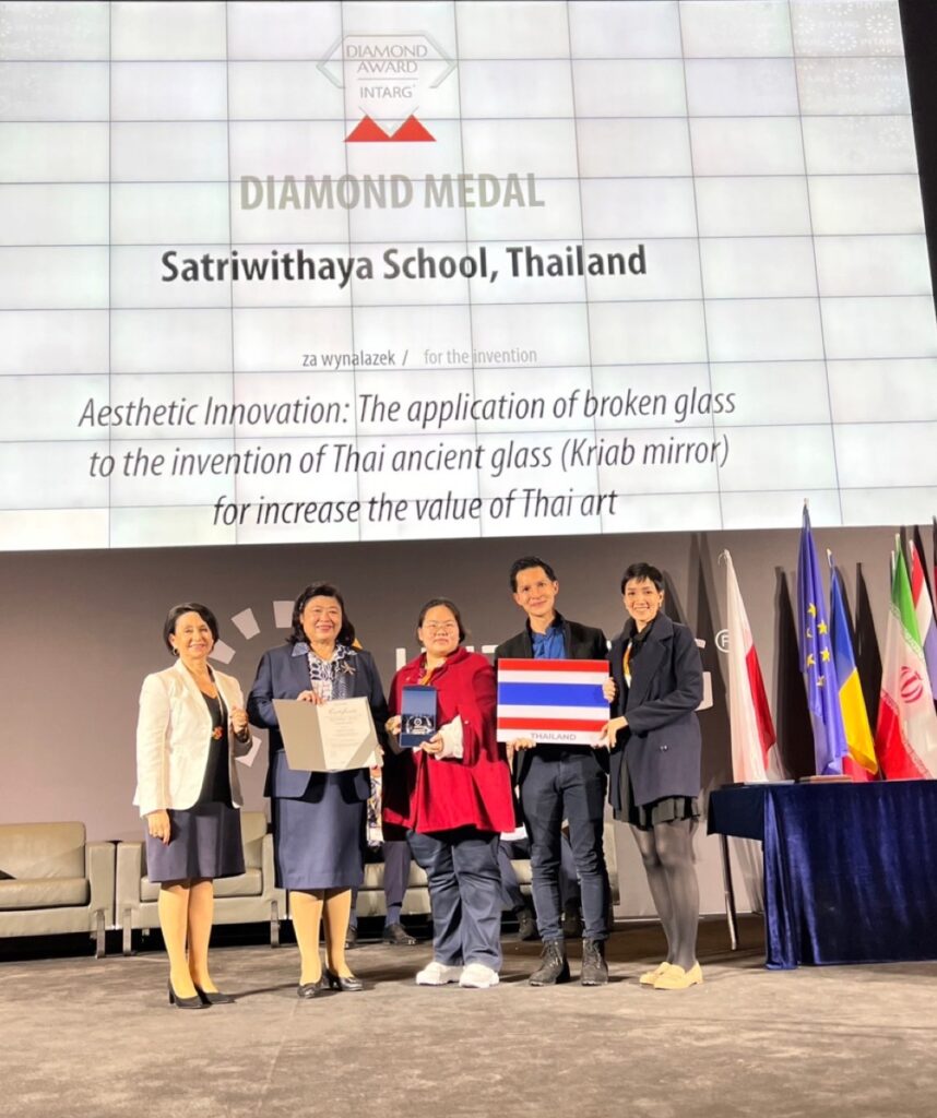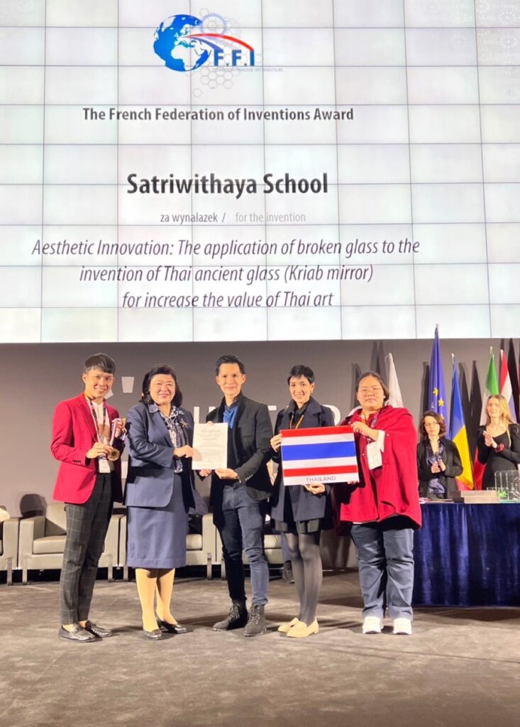 - รางวัล Diamond Medal จากผลงานเรื่อง “นวัตกรรมเชิงศิลป์ (Aesthetic Innovation) : การประยุกต์ใช้เศษแก้วในการประดิษฐ์เป็นกระจกเกรียบโบราณ (Thai ancient glass) เพื่อเพิ่มคุณค่างานศิลปกรรมไทย” โดยนายรัชพล เต๋จ๊ะยา และคณะ จากโรงเรียนสตรีวิทยา และยังได้รับรางวัล Special Prize on stage จาก Europe France Inventeurs (The French Federation of Inventions Award)
