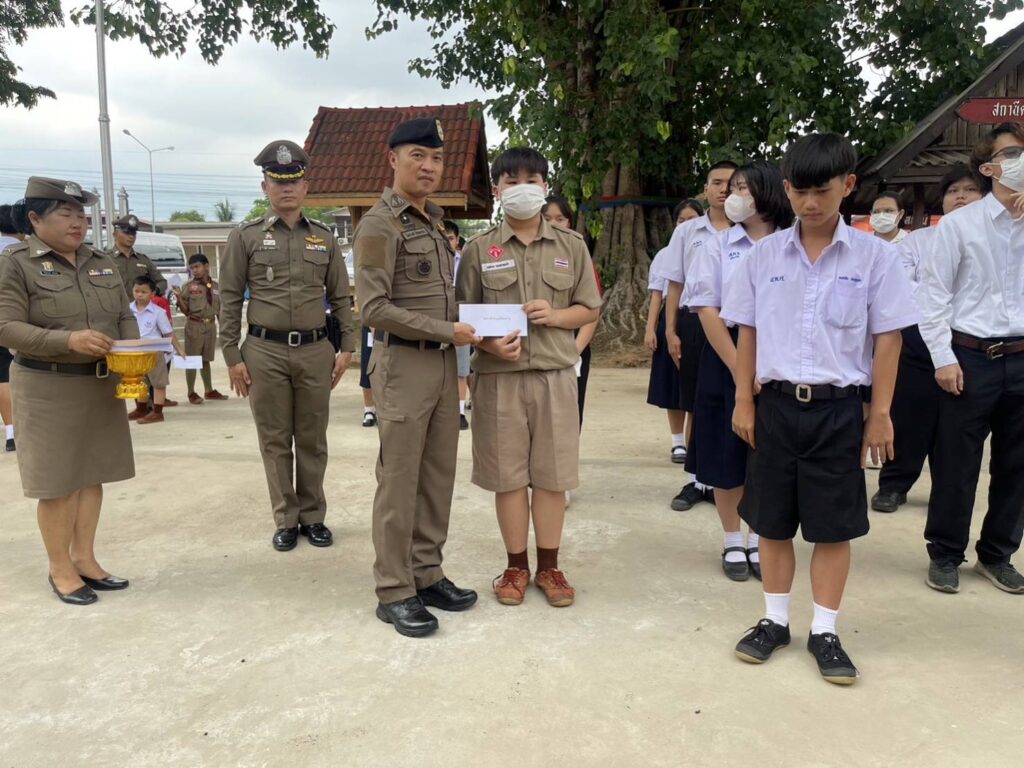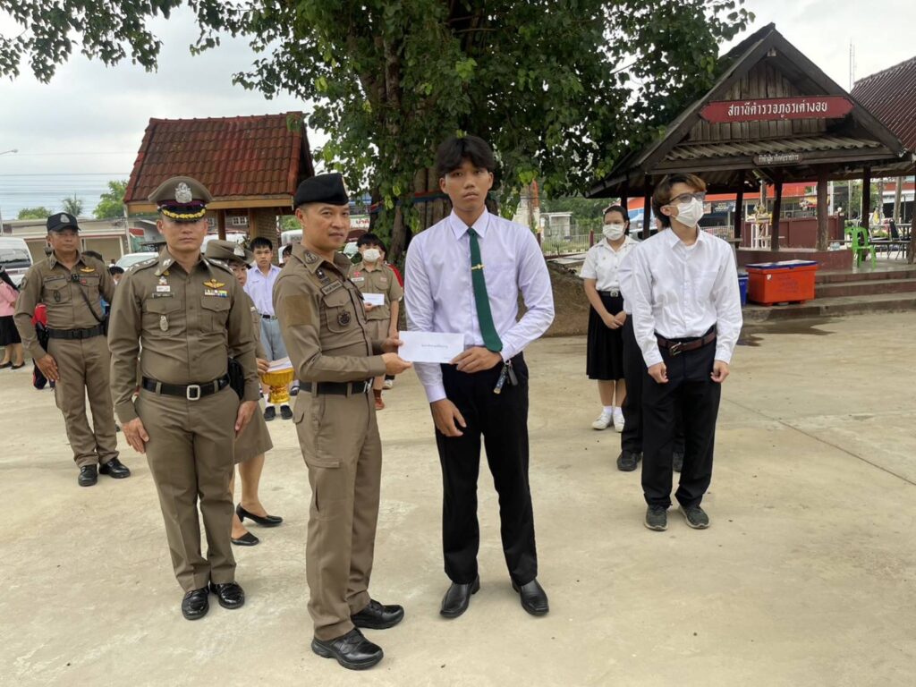 ณ ลานอเนกประสงค์หน้า สภ.เต่างอย ต.เต่างอย อ.เต่างอย จ.สกลนคร มูลนิธิพระราหู นำโดย พล.ต.ท.ไตรรงค์ ผิวพรรณ ผบช.กมค.พร้อมด้วย พ.ต.อ.ทิวา โสภาเจริญ รอง ผบก.สปพ.,พ.ต.อ.ไกลเขต บุรีรักษ์ รอง ผบก.ภ.จ.สระแก้ว,พ.ต.อ.ชัชพล สมแก้ว รอง ผบก.สบส.,พ.ต.อ.ปรีชา กองแก้ว รอง ผบก.ภ.จ.หนองคาย และพ.ต.อ.โชคชัย อินทะนิน รอง ผบก.ภ.จ.สกลนคร ได้ร่วมเดินทางมายัง สภ.เต่างอย เพื่อมอบถุงยังชีพให้แก่ข้าราชการตำรวจ จำนวน 54 ถุง และมอบทุนการศึกษาให้แก่บุตร ธิดาข้าราชการ จำนวน 51 ทุน รวมเป็นเงินทั้งสิน 135,000 บาท เพื่อเป็นขวัญกำลังใจให้กับผู้ใต้บังคับบัญชา