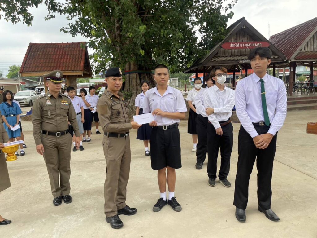 โดยมี นายสุขสันต์ วิเวก นายอำเภอเต่างอย,ว่าที่ พ.ต.อ.กิตติ แก้วทินกร ผกก. สภ.เต่างอย ข้าราชการตำรวจและผู้ปกครอง รวมทั้ง บุตร ธิดาข้าราชการตำรวจ สภ.เต่างอย เข้าร่วมการมอบถุงยังชีพและทุนการศึกษาครั้งนี้