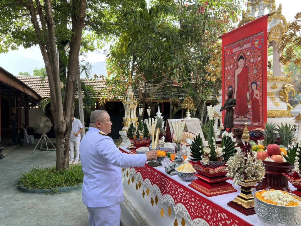 โดยมีเจ้ารัตนา ทิพยเดช ณ เชียงใหม่ นายกสมาคมลูกหลานเจ้านายฝ่ายเหนือ,พล.ต.ต.แสวง เที่ยงใจ ผอ.โรงพยาบาลดารารัศมี,คุณรัตน์ ปาละพงศ์ ประธานกรรมการบริษัทผึ้งน้อยเบเกอรี่ ร่วมพิธีดังกล่าว