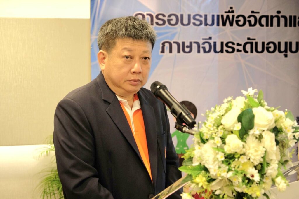 ดังนั้น สำนักงานคณะกรรมการส่งเสริมการศึกษาเอกชน ในฐานะที่เป็นหน่วยงานส่งเสริมและสนับสนุนการจัดการเรียนการสอนในโรงเรียนเอกชนให้มีคุณภาพจึงได้จัดอบรมเพื่อจัดทำและพัฒนาสื่อการเรียนการสอนภาษาจีน สำหรับครูไทยสอนภาษาจีน ระดับอนุบาลและประถมศึกษา ในภาคตะวันออก ทั้งนี้เพื่อพัฒนาครูไทยที่สอนภาษาจีนให้มีความรู้ มีทักษะ สามารถใช้เทคนิคการสอนภาษาจีนเพื่อกระตุ้นความสนใจของผู้เรียนผ่านรูปแบบกิจกรรมและเกมส์ต่างๆ ได้เป็นอย่างดี ซึ่งนอกจากจะส่งผลให้ผู้เรียนเกิดการยกระดับทักษะภาษาจีนของตนเองแล้ว ยังเป็นการส่งเสริมให้มีการพัฒนาการเรียนการสอนภาษาจีนในประเทศไทยก้าวเข้าสู่มาตรฐานในระดับนานาชาติอีกด้วยผมหวังเป็นอย่างยิ่งว่า หลังจากผ่านการอบรม ผู้เข้ารับการอบรมจะนำความรู้ความสามารถ หรือประสบการณ์ดีๆ ที่ได้จากการอบรม ไปใช้ให้เกิดประโยชน์ต่อการเรียนการสอนภาษาจีน
