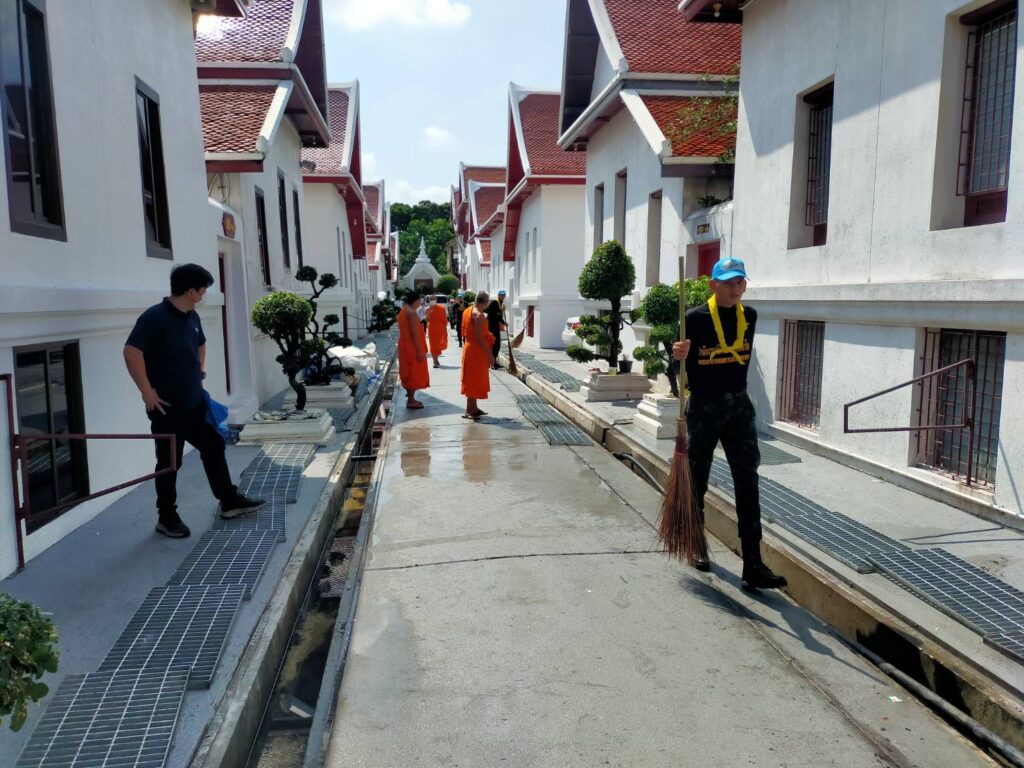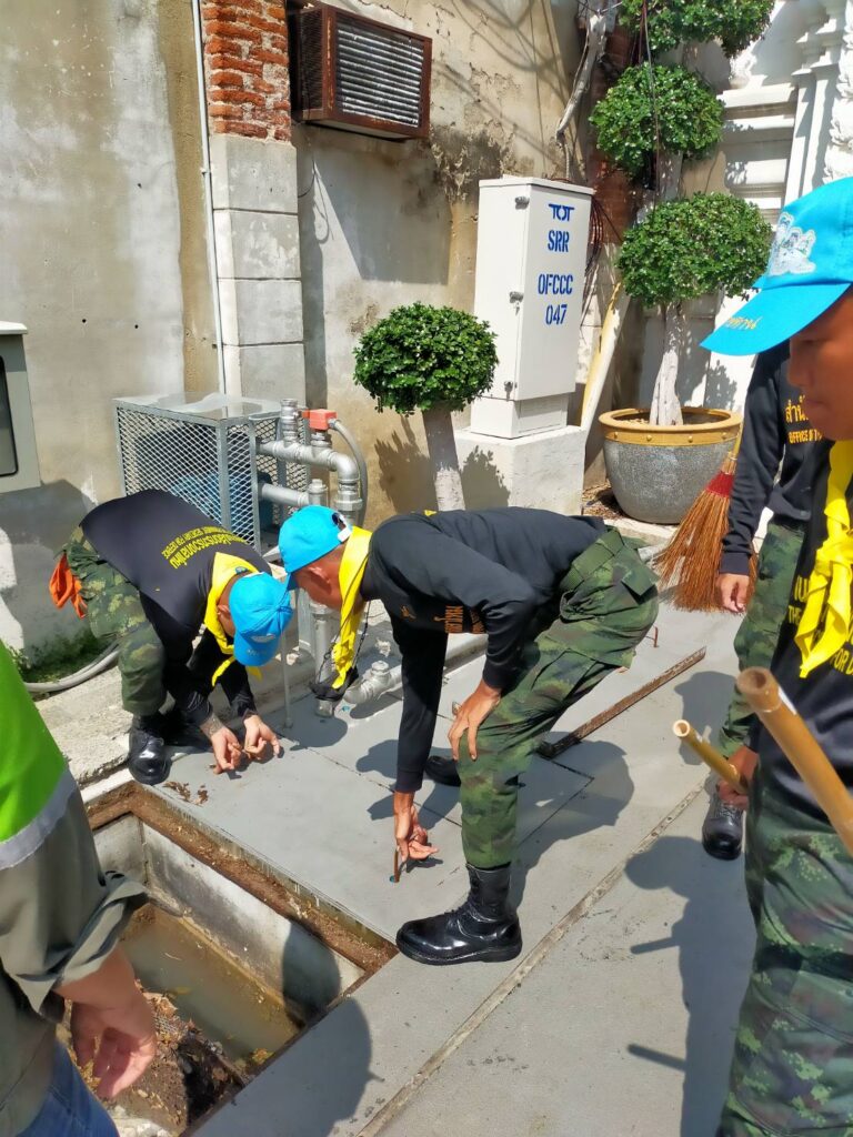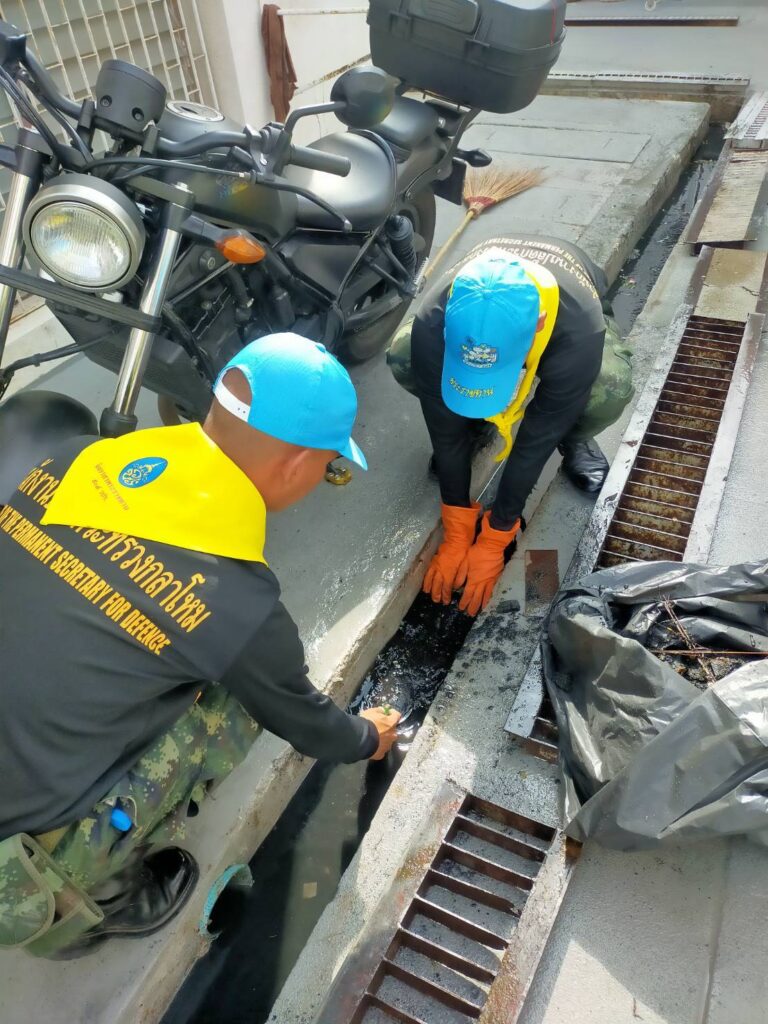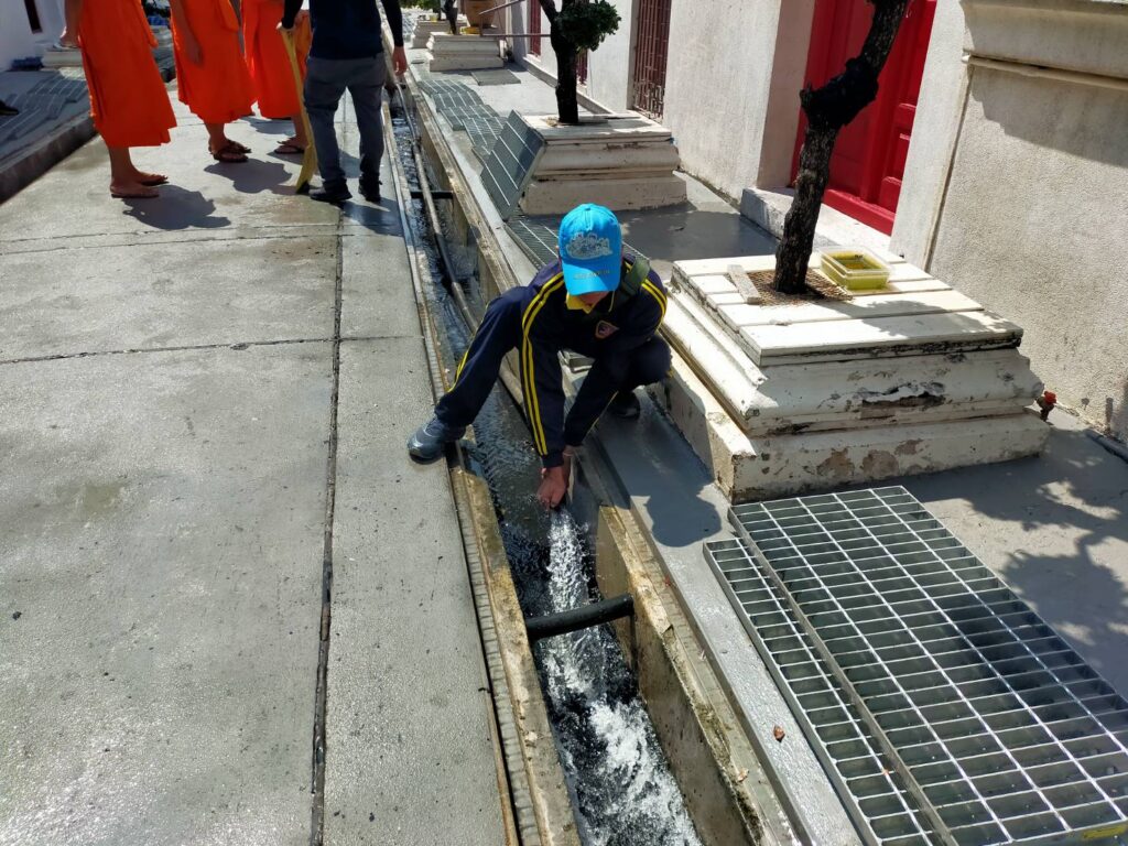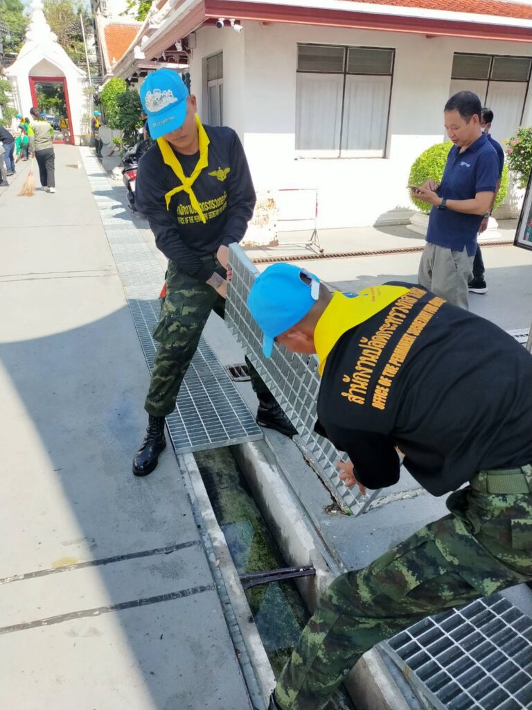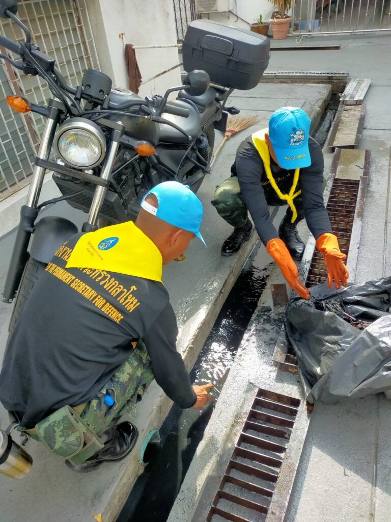 1.ทำความสะอาดร่องน้ำ โดยการเก็บขยะ ตักโคลน และวัชพืชเพื่อการระบายน้ำ ได้ดียิ่งขึ้น ครับ