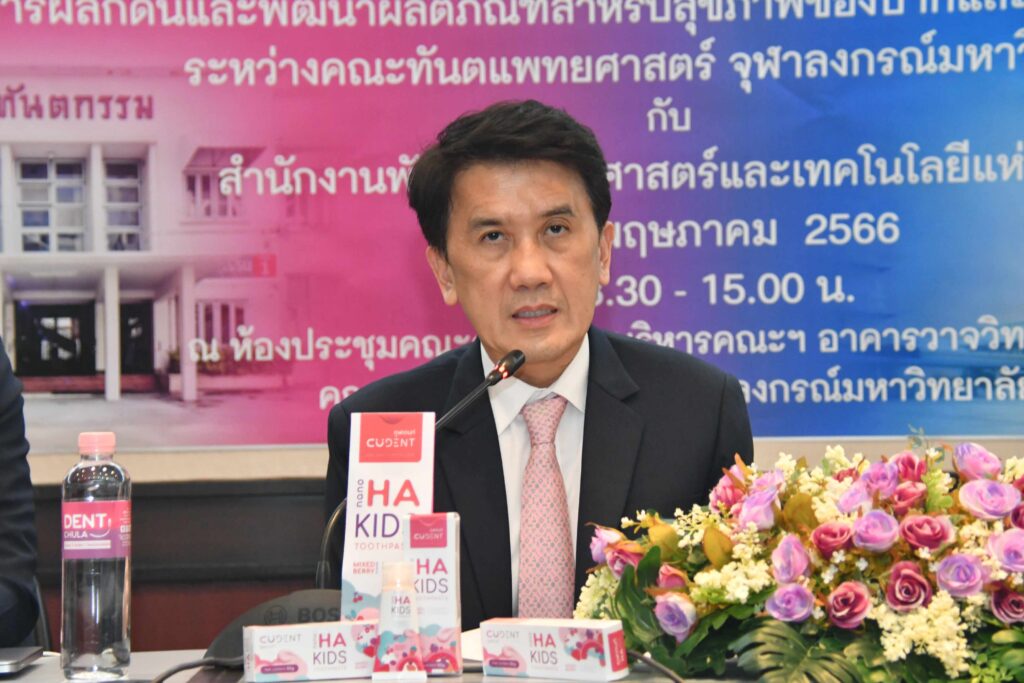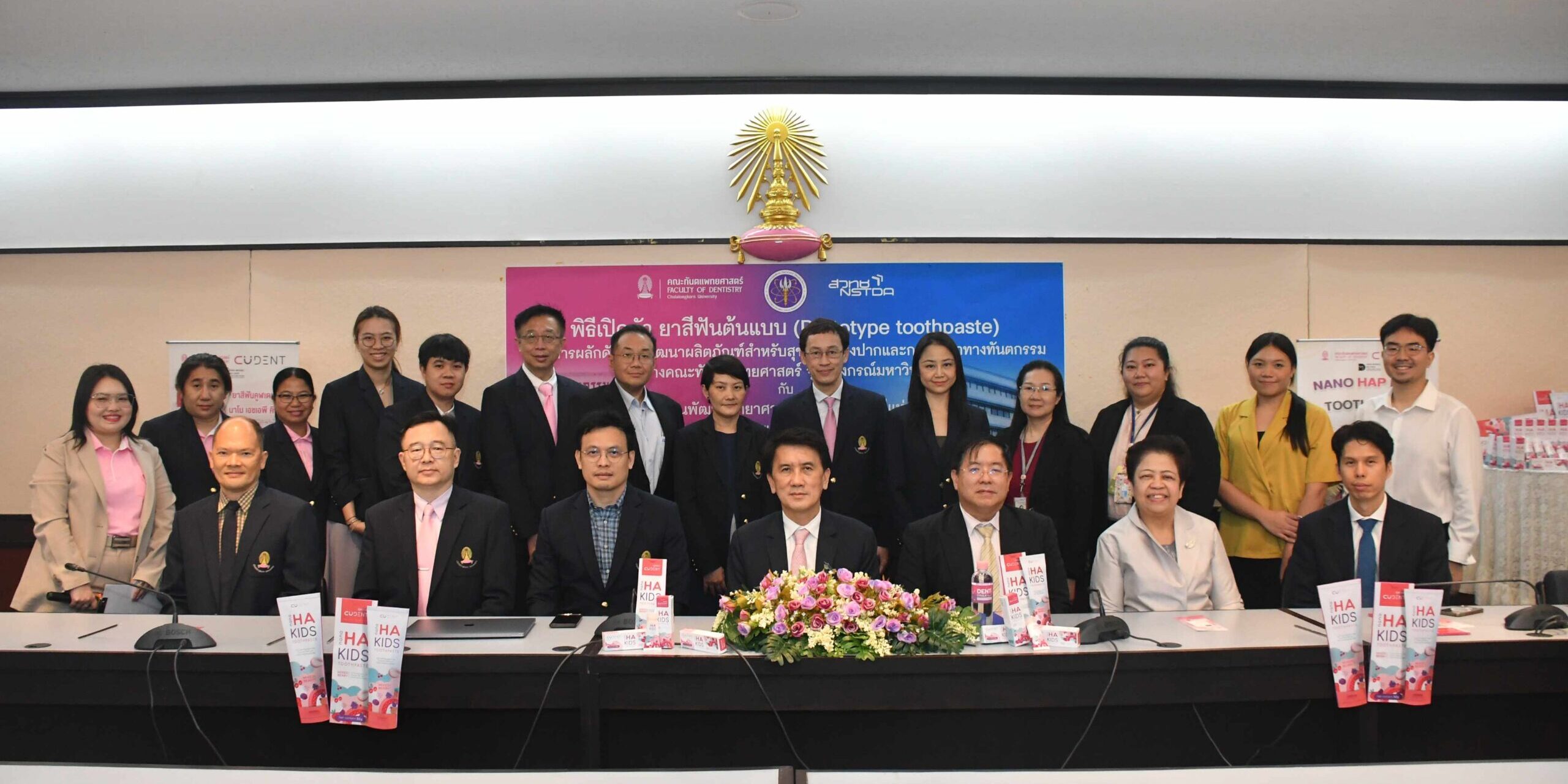 วันที่ 30 พฤษภาคม 2566 ณ คณะทันตแพทยศาสตร์ จุฬาลงกรณ์มหาวิทยาลัย : ศูนย์วิจัยเทคโนโลยีสิ่งอำนวยความสะดวกและเครื่องมือแพทย์ (A-MED) หน่วยงานภายใต้ สำนักงานพัฒนาวิทยาศาสตร์และเทคโนโลยีแห่งชาติ (สวทช.) กระทรวงการอุดมศึกษา วิทยาศาสตร์ วิจัยและนวัตกรรม (อว.) ร่วมกับ คณะทันตแพทยศาสตร์ จุฬาลงกรณ์มหาวิทยาลัย เปิดตัวยาสีฟันต้นแบบด้วยนวัตกรรมนาโนไฮดรอกซีอะพาไทต์ที่ช่วยในการสะสมแร่ธาตุคืนกลับสู่ผิวเคลือบฟัน ภายใต้โครงการผลักดันและพัฒนาผลิตภัณฑ์สำหรับสุขภาพช่องปากและการรักษาทางทันตกรรม เพื่อพัฒนาคุณภาพชีวิตและสุขภาพช่องปากของประชาชนคนไทย ด้วยการสร้างนวัตกรรมทางทันตกรรมโดยทันตแพทย์และนักวิจัยไทยที่จะช่วยผลักดันอุตสาหกรรมการแพทย์ในประเทศให้สามารถพึ่งพาตนเองได้