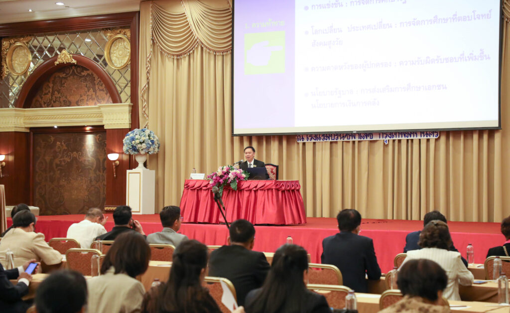 เมื่อวันที่ 29 พฤษภาคม 2566 เวลา 09.00 น. : นายมณฑล ภาคสุวรรณ์เลขาธิการคณะกรรมการส่งเสริมการศึกษาเอกชน (เลขาธิการ กช.) เป็นประธานในพิธีเปิดการประชุมสัมมนาขับเคลื่อนนโยบายและสร้างการมีส่วนร่วมในการจัดการศึกษาเอกชน โดยมี นายประพัทธ์ รัตนอรุณ ว่าที่เรือตรี ชูชีพ อรุณเหลือง รองเลขาธิการ (กช.) คณะกรรมการส่งเสริมการศึกษาเอกชน ประธานคณะกรรมการประสานและส่งเสริมการศึกษาเอกชนจังหวัด ประธานคณะกรรมการประสานและส่งเสริมการศึกษาเอกชนนอกระบบระดับจังหวัด นายกสมาคมทางการศึกษาเอกชน ประธานเครือข่ายพัฒนาการศึกษาเอกชน ผู้บริหารโรงเรียนเอกชน และข้าราชการ (สช.) เข้าร่วมการประชุม ณ ห้องราชาบอลรูม ชั้น 11 โรงแรมปรินซ์พาเลซ มหานาค กทม.