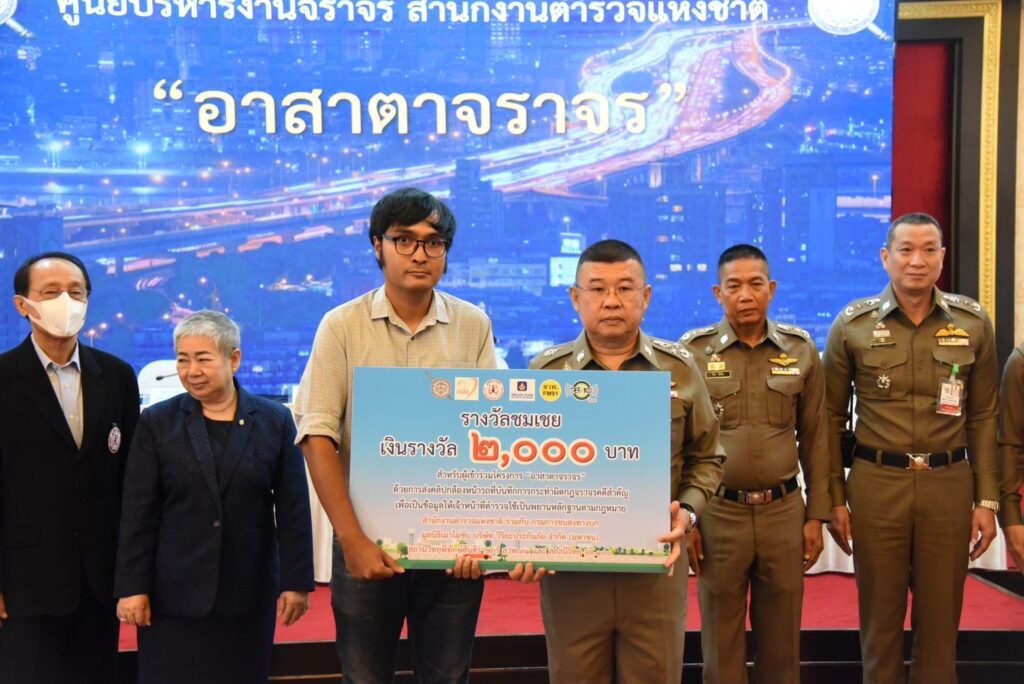 วันที่ 31 พ.ค.66 เวลา 10.30 น.ณ ห้องสารสิน สำนักงานตำรวจแห่งชาติ : พล.ต.อ.ดำรงศักดิ์ กิตติประภัสร์ ผบ.ตร.,พล.ต.ท.วีระ จิรวีระ รอง จตช.พร้อม นพ.แท้จริง ศิริพานิช เลขาธิการมูลนิธิเมาไม่ขับ,คุณกานดา วัฒนายิ่งสมสุข ที่ปรึกษาฝ่ายสื่อสารองค์กร บริษัท วิริยะประกันภัย จำกัด(มหาชน),คุณนิตยา ลีธีระกุล ผู้บริหารสถานีวิทยุพิทักษ์สันติราษฎร์ สวพ.91 และ คุณอัจฉรา บัวสมบูรณ์ ผู้บริหารสถานีวิทยุ จส.100 ร่วมแถลงผลการมอบรางวัล และเกียรติบัตร โครงการอาสาตาจราจร โดยมอบรางวัลให้กับประชาชนเจ้าของคลิปกล้องหน้ารถที่บันทึกอุบัติเหตุทางถนนหรือการกระทำผิดกฎจราจรที่สำคัญ ประจำเดือน เม.ย. 2566 รวมรางวัลทั้งสิ้น 20 รางวัล เงินรางวัลสูงสุด 20,000 บาท รวมเงินรางวัลที่จะมอบในวันนี้ เป็นเงินจำนวนทั้งสิ้น 100,000 บาท โดยบริษัท วิริยะประกันภัย และ กองทุนเลขสวย (กองทุนเพื่อความปลอดภัยในการใช้รถใช้ถนน) กรมการขนส่งทางบก เป็นผู้สนับสนุนเงินรางวัล