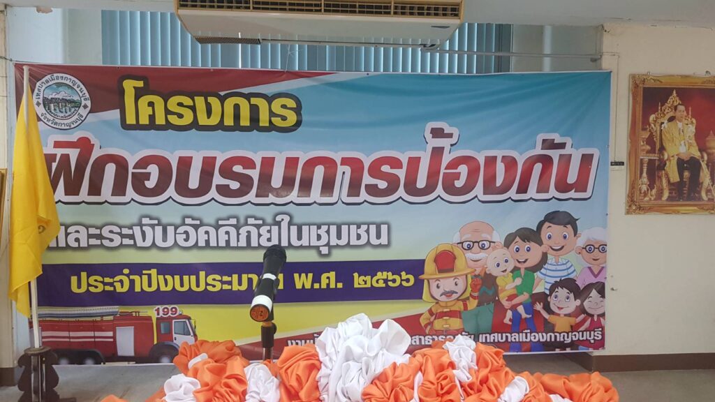 เทศบาลเมืองกาญจนบุรี โดยงานป้องกันและบรรเทาสาธารณภัย (งานดับเพลิง) สำนักปลัดเทศบาล ได้จัดทำ “โครงการฝึกอบรมการป้องกันและและระงับอัคคีภัยในชุมชน” โดยมี นายวสันต์ ภูษิตกาญจนา นายกเทศมนตรีเมืองกาญจนบุรี เป็นประธานเปิดโครงการดังกล่าว พร้อมด้วย นายเกรียงไกร จงเจริญ , นางสาวปัทมาพร เหลืองสอาด , นายอุดม เหลืองสด รองนายกเทศมนตรี นายอำพล ยุติโกมินทร์ ปลัดเทศบาล หัวหน้าส่วนราชการ เจ้าหน้าที่ผู้มีส่วนเกี่ยวข้อง และ ผู้เข้ารับการอบรมฯ เข้าร่วมในพิธีเปิดโดยพร้อมเพรียงกัน