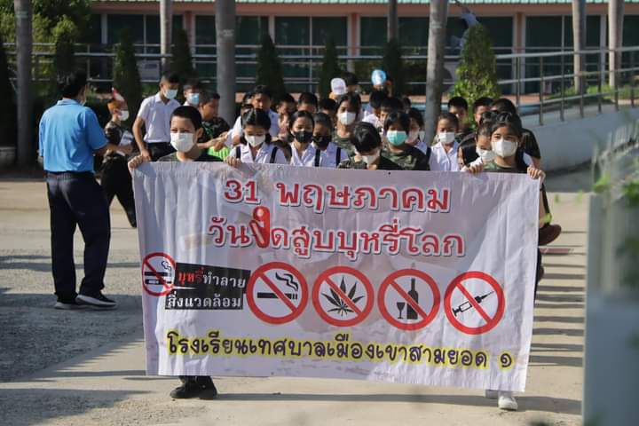 วันที่ 31 พฤษภาคม 2566 เวลา 08.00 น. โรงเรียนเทศบาลเมืองเขาสามยอด 1 ในสังกัดเทศบาลเมืองเขาสามยอด ได้จัดกิจกรรมเดินรณงค์ ในวันงดสูบบุหรี่โลก เพื่อส่งเสริมให้ประชาชนและหน่วยงานทุกภาคส่วนตระหนักถึงผลกระทบของพิษภัยบุหรี่ โดยองค์การอนามัยโลกระบุชัดเจนว่า การสูบบุหรี่เป็นสาเหตุสำคัญของการป่วยและเสียชีวิตก่อนวัยอันควรที่สามารถป้องกันได้ และกำหนดให้ วันที่ 31 พฤษภาคม ของทุกปีเป็นวันงดสูบบุหรี่โลก (World No Tobacco Day) มีการกำหนดคำขวัญในการรณรงค์เพื่อการไม่สูบบุหรี่ในแต่ละปี โดยมีอนุสัญญาควบคุมยาสูบและแสดงโทษของยาสูบ เพื่อแนะนำให้แต่ละประเทศ ใช้ซองบุหรี่แบบเรียบเพื่อแสดงภาพคำเตือนบนซองบุหรี่ และ“คำขวัญวันงดสูบบุหรี่โลก” ประจำวันพุธที่ 31 พฤษภาคม 2566 ได้กําหนดคำขวัญในประเทศไทยเนื่องใน วันงดสูบบุหรี่โลก คือ “บุหรี่ไฟฟ้ามีสารพิษ เสพติด อันตราย” เพื่อใช้เป็นแนวทางการสื่อสารรณรงค์ประชาสัมพันธ์ และเพื่อการควบคุมการบริโภคยาสูบในทิศทางเดียวกันตลอดปีตามวัตถุประสงค์ที่กำหนดเอาไว้